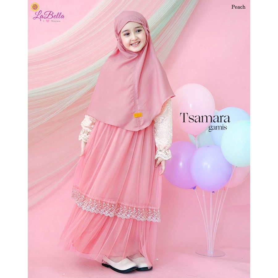 (5-12 tahun) TSM Baju Muslim Setelan Gamis Pesta Anak Set Jilbab Labella Tsamara Tutu Dress Cantik Mewah I Pink Maroon Peach Ungu