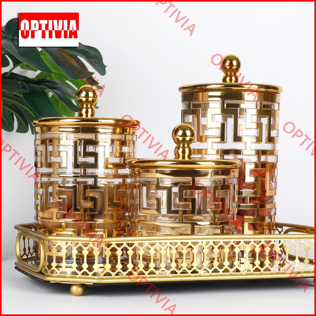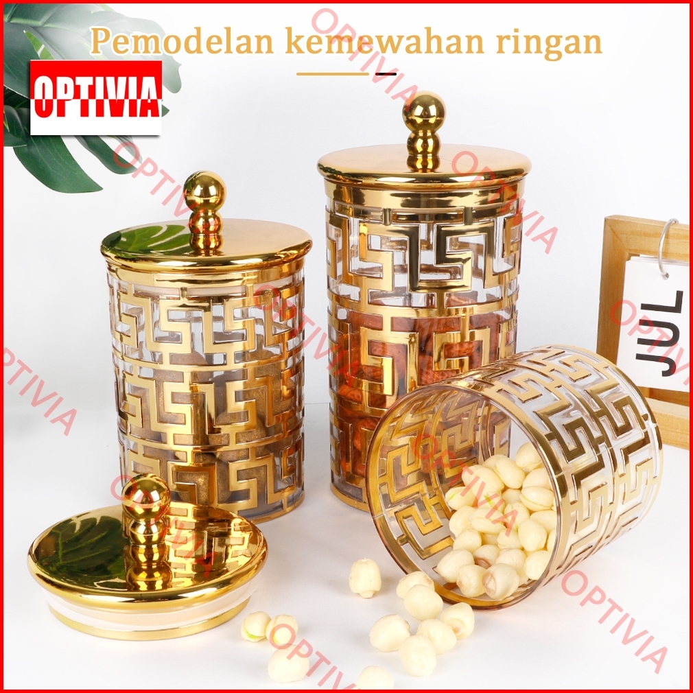 Optivia Toples Mewah Akrilik 3pcs Set Toples Kue Mewah Toples Makanan Estetik Toples Kedap Udara Toples Set