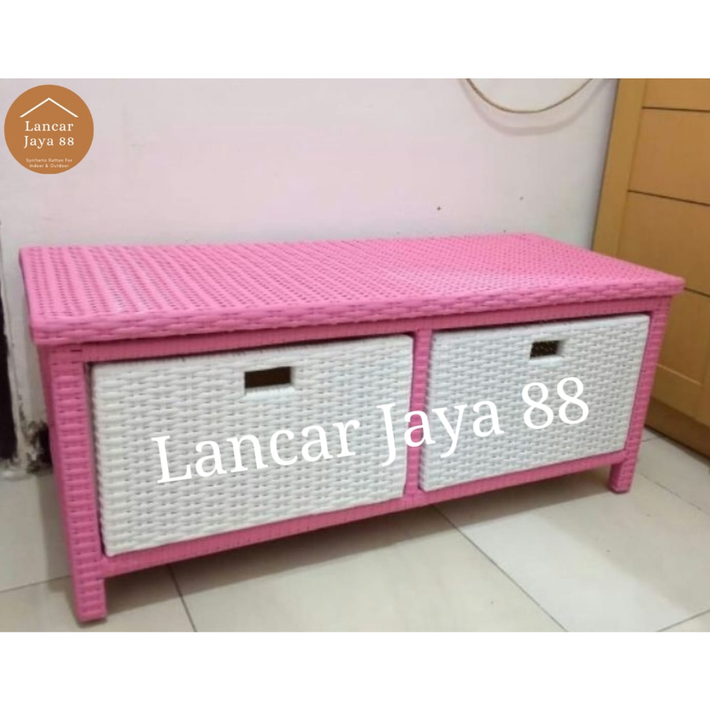 Meja Tv Lemari 2 Laci Rotan Sintetis Minimalis