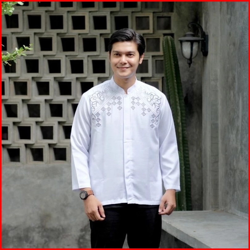 Baju Koko Putih Lengan Panjang Baju Koko Pria Bordir Katun M L Xl Xxl
