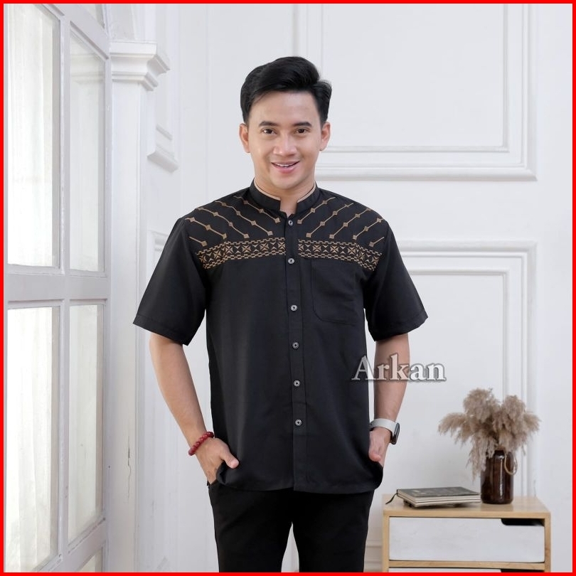 Koko Bordir Lengan Pendek - Koko Arkan - Koko Polos Dewasa Premium Bahan Vito Signature - Saku Atas