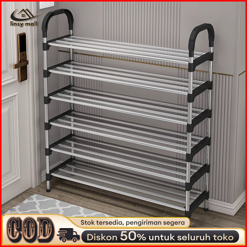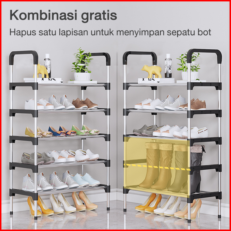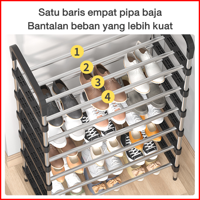 Rak Sepatu 8 Susun Stainless Steel Kuat Tempat Sepatu Sandal Multifungsi Besar 133x55x26cm