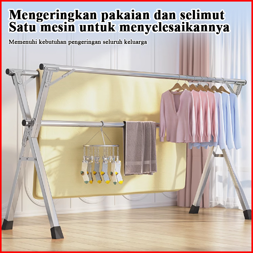 304 Jemuran Baju Lipat Jemuran Baju Stainless Steel 160-240cm Jemuran Pakaian Lipat Basah Tahan Karat Jemuran Hanger Por