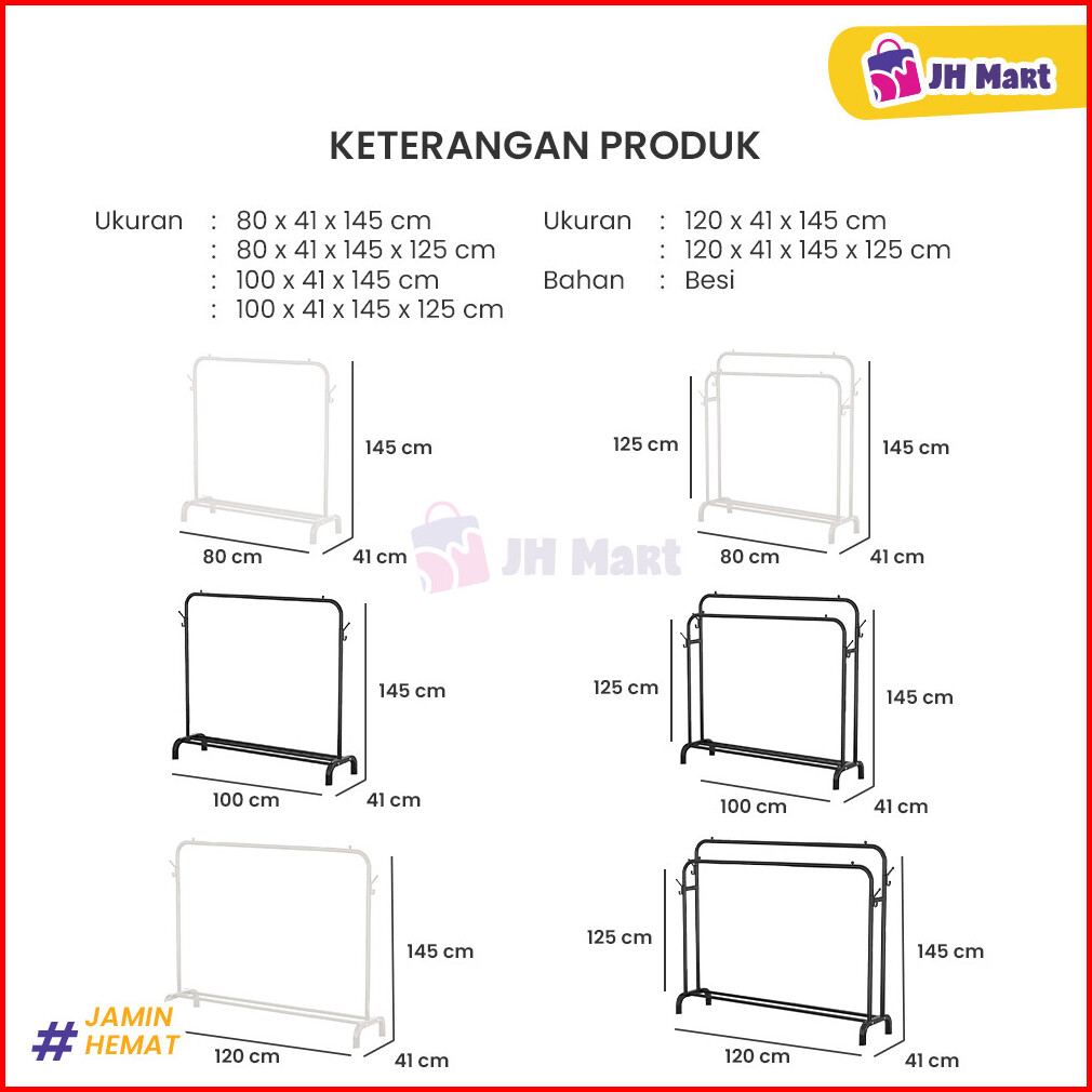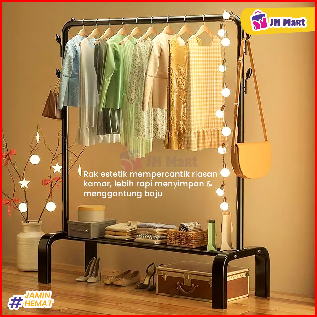 Jhm - Stand Hanger 2 Layer Gantungan Gawangan Baju Rak Jemur Pakaian Multifungsi