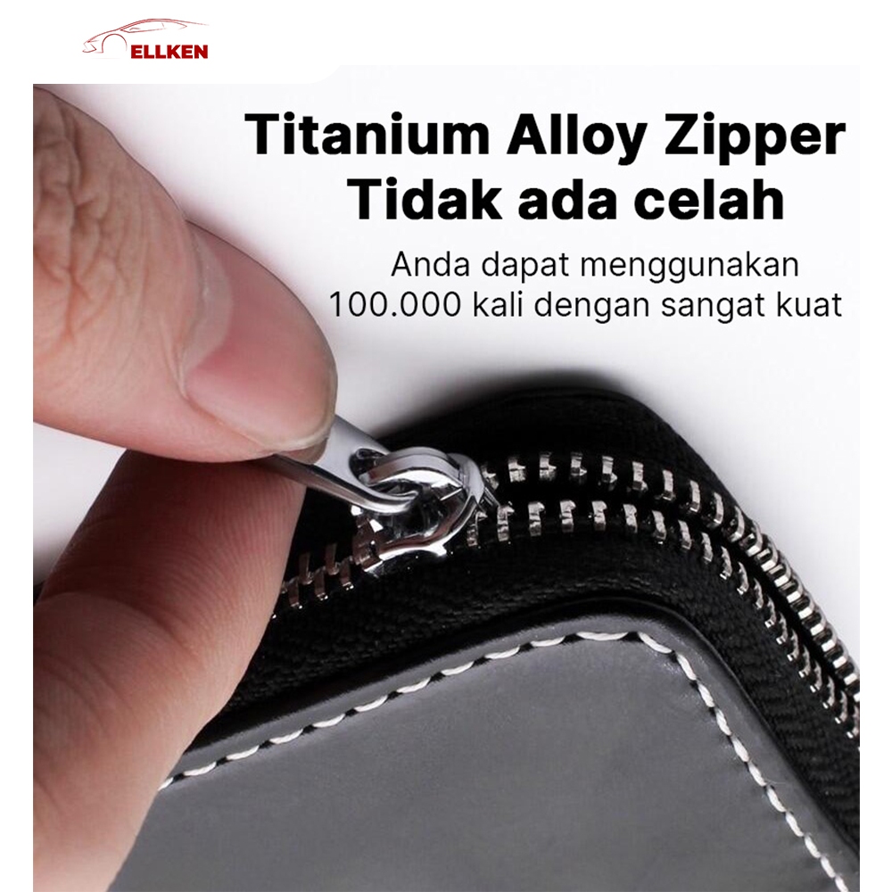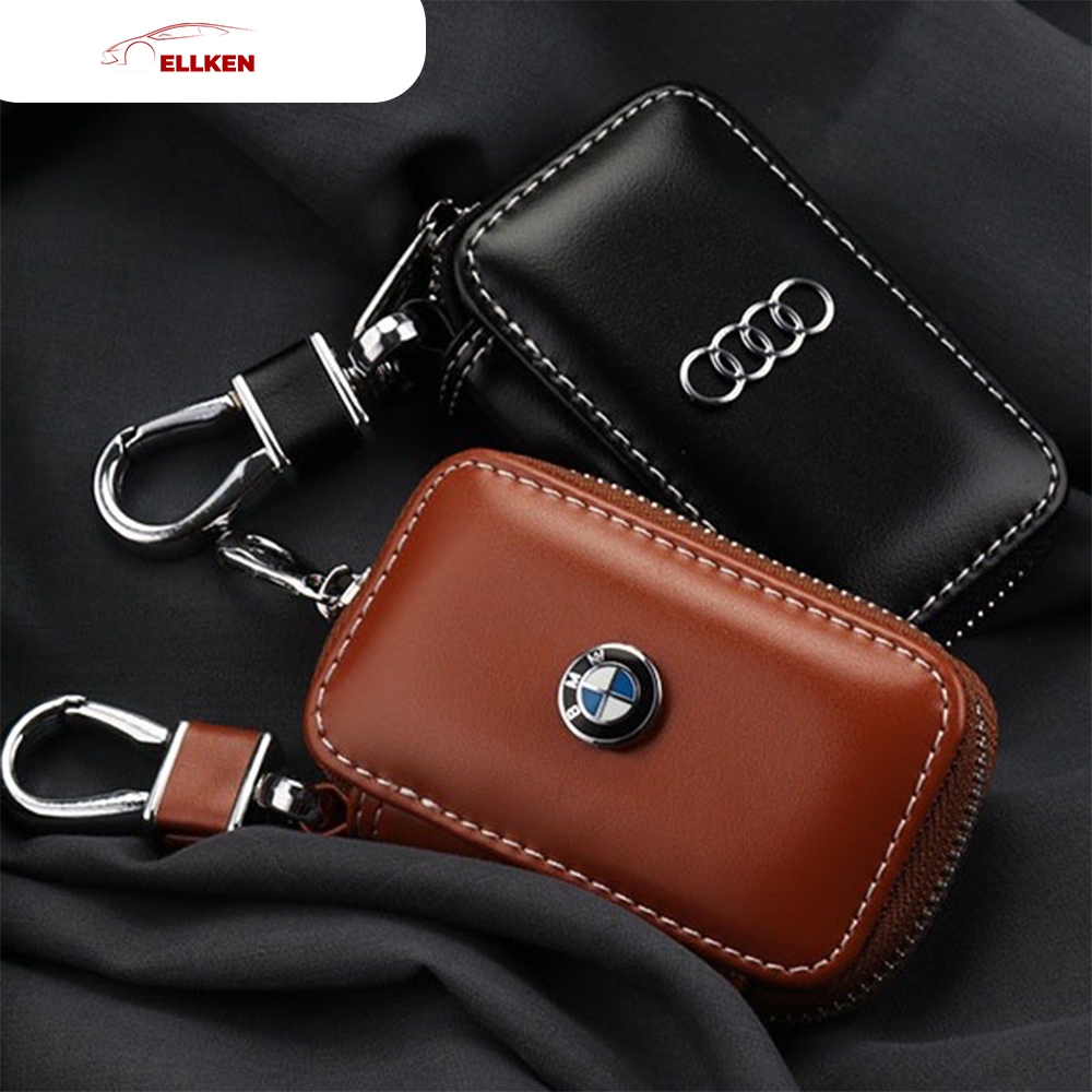 ELLKEN Gantungan Kunci Mobil / Motor LOGO Sarung Cover Dompet Kunci Mobil STNK Merk Hitam Zipper