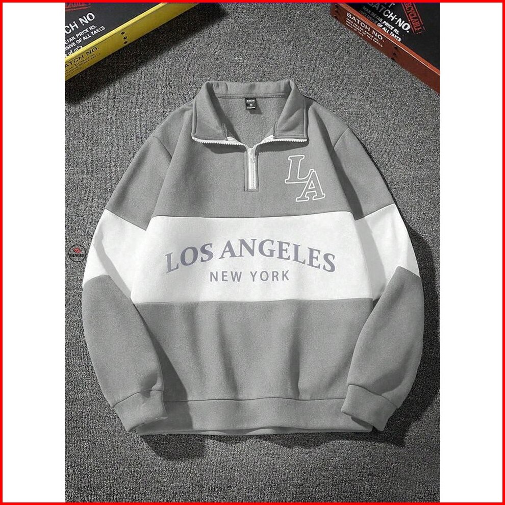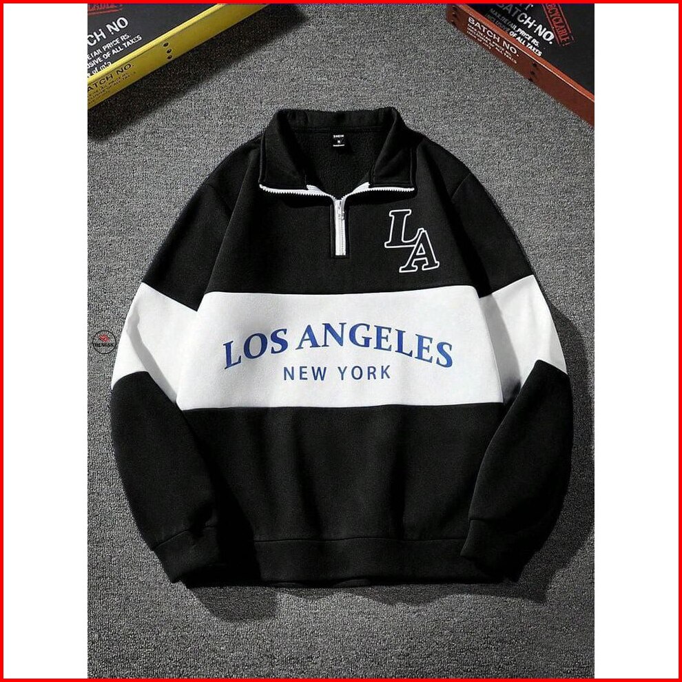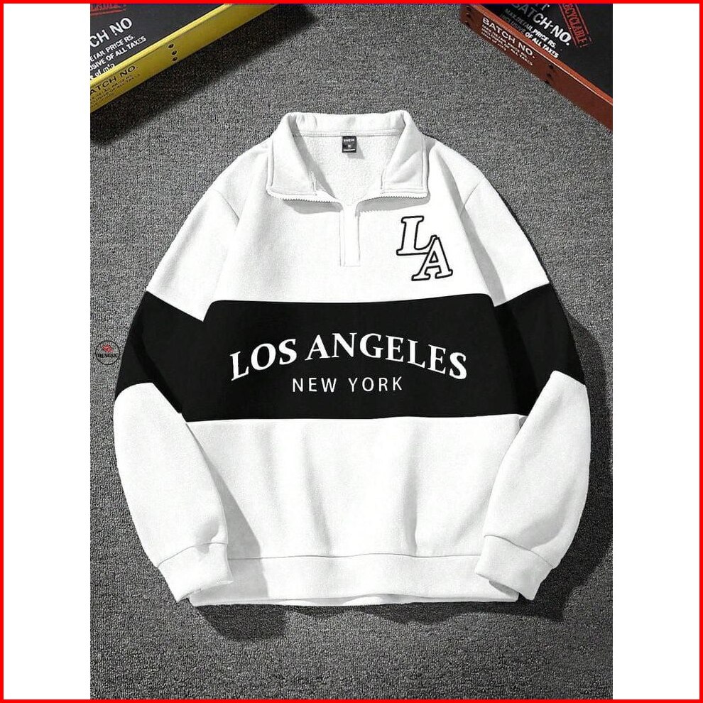 Sweater Rugby Halfz Zipper Stripe Terbaru Sweater Kerah Crewneck Loseangels Pria Wanita