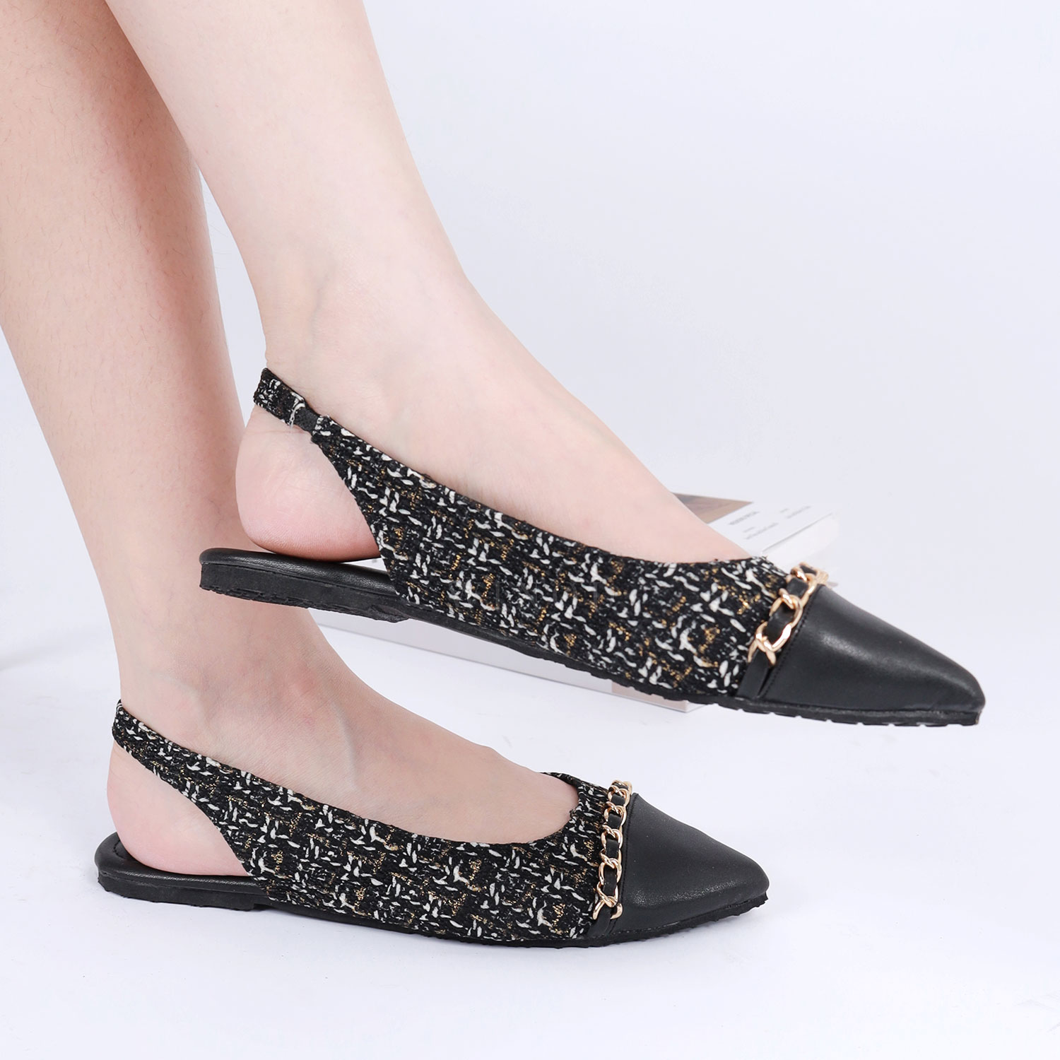 WINOD Louis Flatshoes Sepatu Flat Kerja Wanita Model Tweed Mules Flat Daily