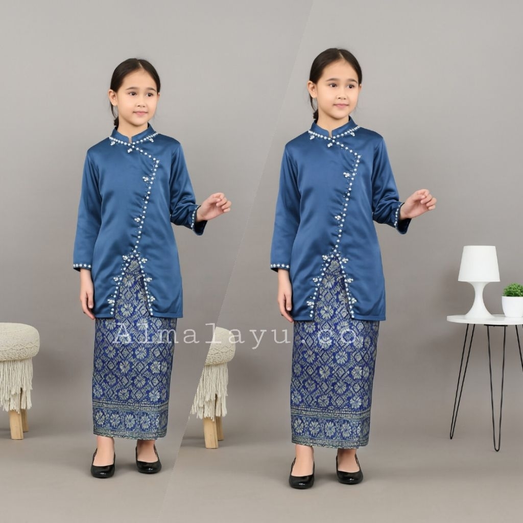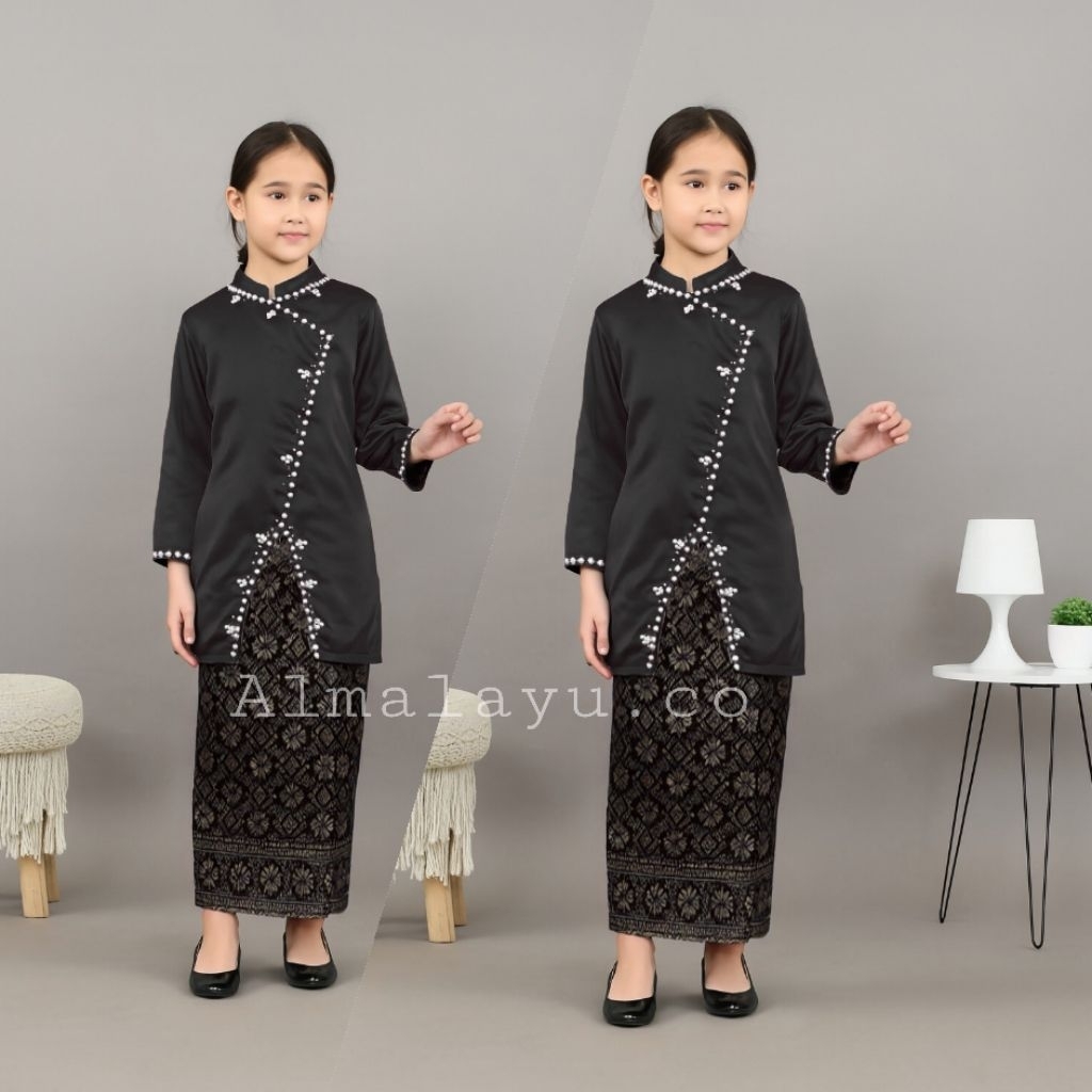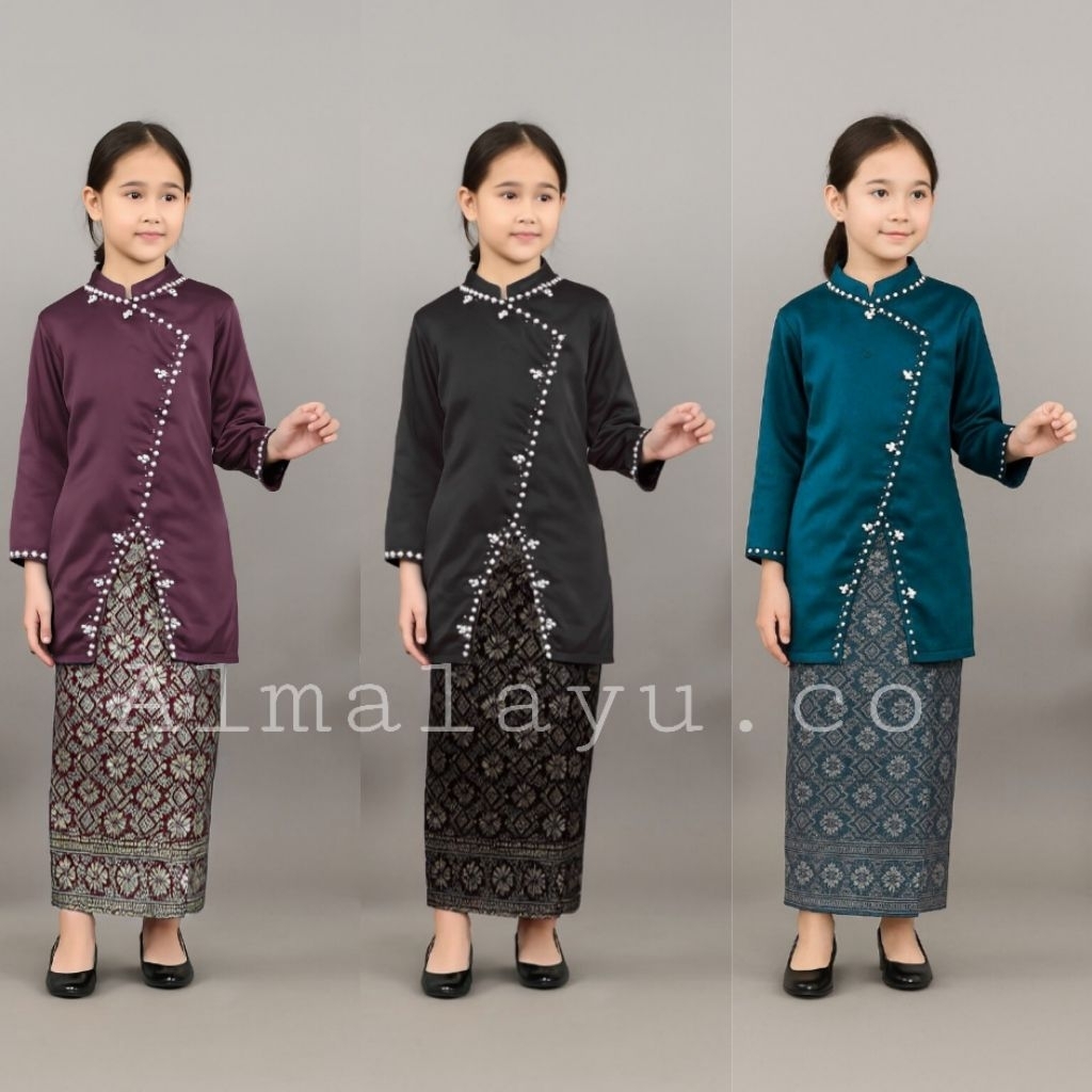 One set Hana anak baju kurung setelan kondangan anak atasan satin dan rok songket blouse payet