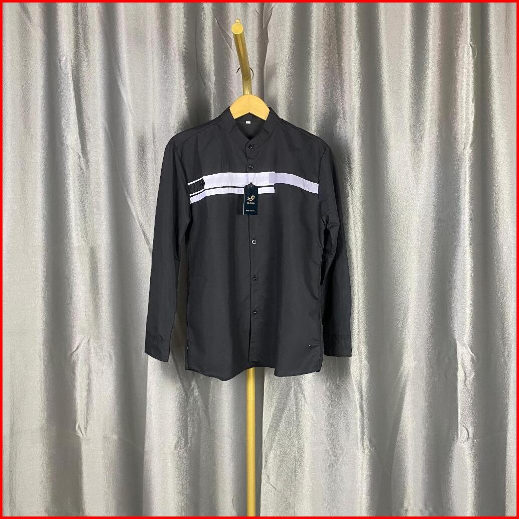 Ar Rusyd - Baju Koko Pria Lengan Panjang Dewasa Yordan Warna Putih Hitam Abu Coklat