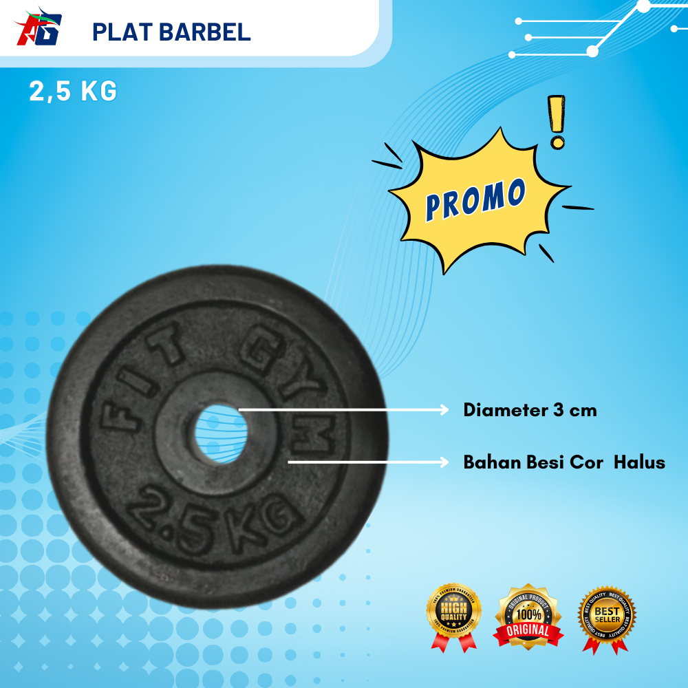 Plate Barbel Beban 2,5 Kg Alat Angkat beban Barbel Cor Besi Diameter 3 Cm