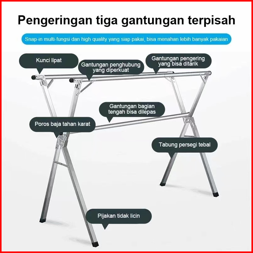 Ready Stock Jemuran Baju Stainless Steel Jemuran Pakaian Jemuran Hanger Jemuran Baju Lipat