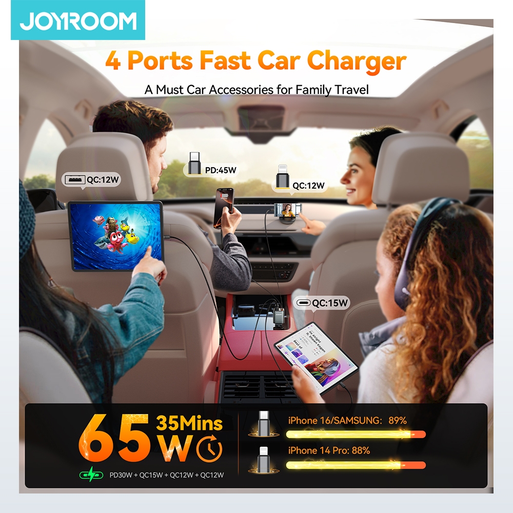 JOYROOM CCL05 Charger Mobil 2 Port+Kabel Type-C+Lightning 4In1 Fast Charging 65W