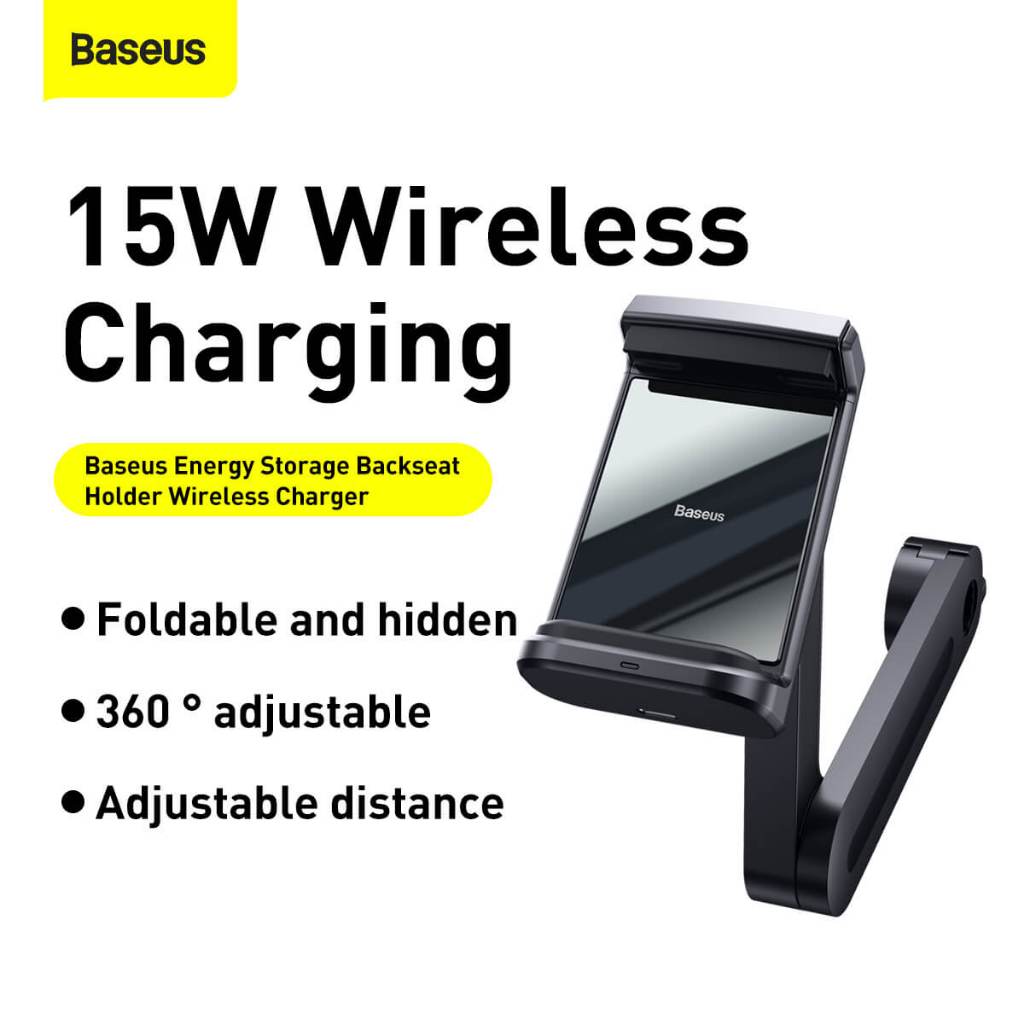 Baseus Backseat Car Mount Wireless Charger 15W Vehicle Phone Holder Bracket Hook Gantungan Kursi Belakang Mobil Back Sea