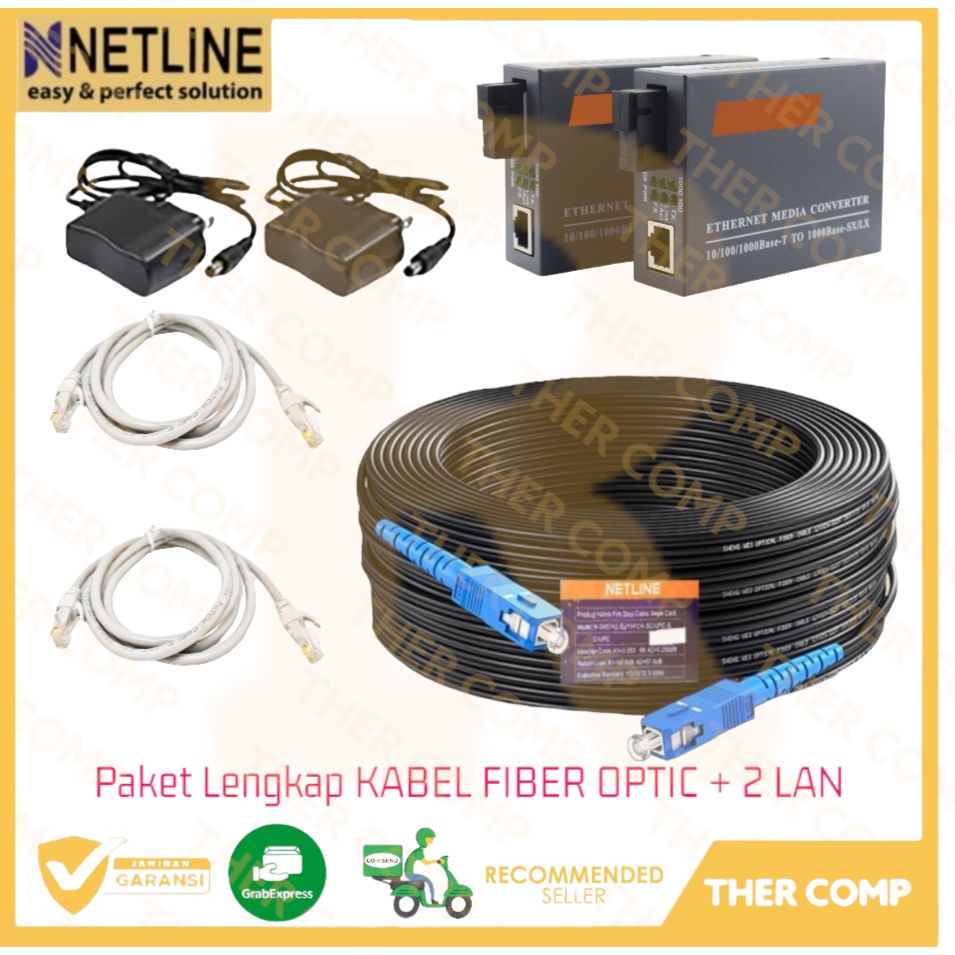Paket Cable Fiber Optic 200 Meter + Media Converter HTB 3100 A dan B + 2 LAN