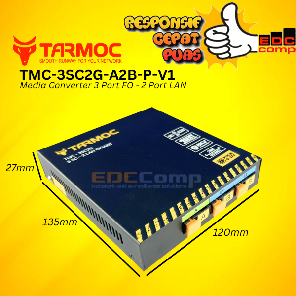 Tarmoc TMC-3SC2G-A2B-P-V1 | Media Converter Switch 3FO 2LAN / 3 FO 2 LAN Gigabit POE IN 9-57 Volt | 3SC 2LAN / 3 SC 2 LA