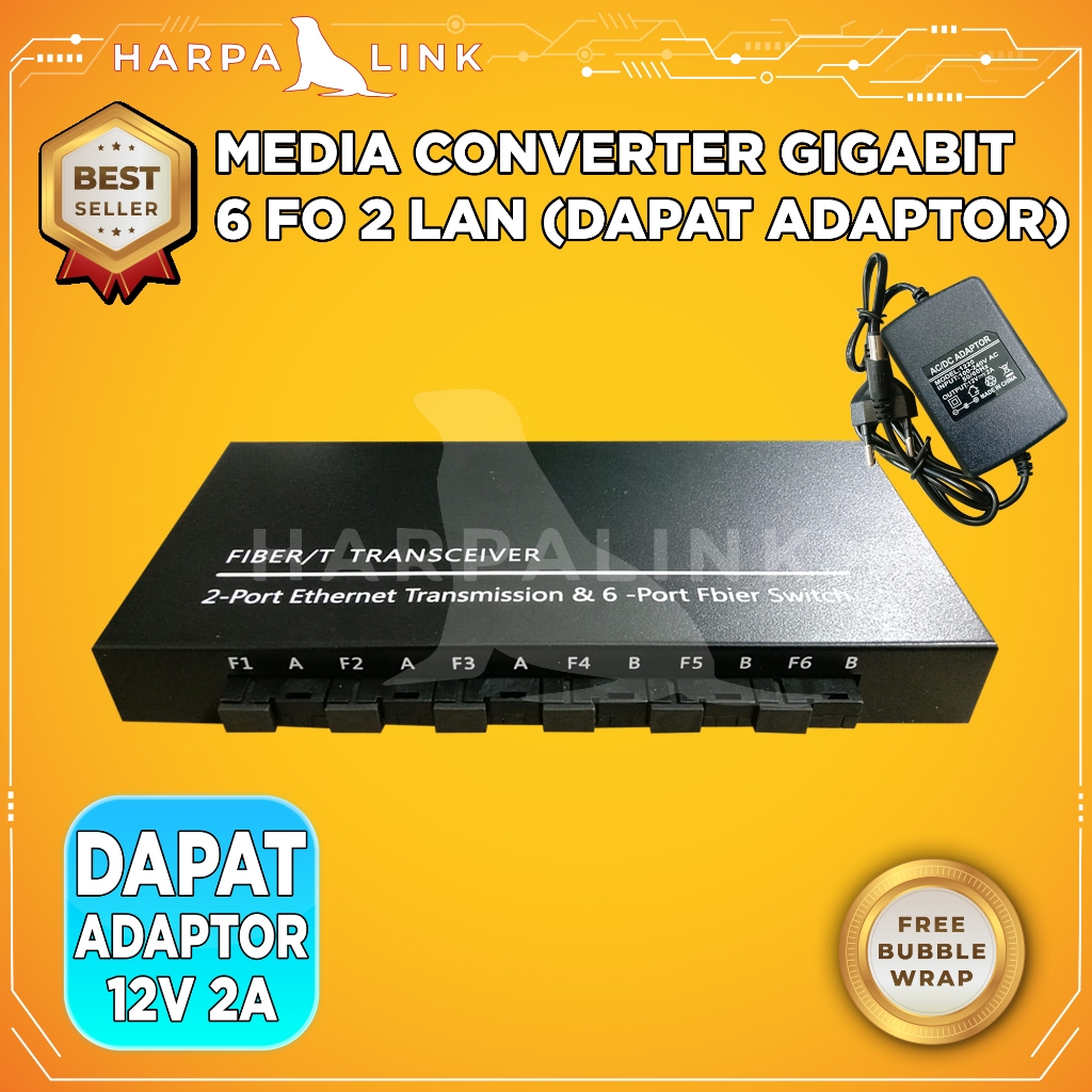 Media Converter 6 FO 2 LAN 6 SC 2 RJ45 Gigabit 1000 Mbps Body Casing Switch Fiber Optic Optik HTB 6 Port FO 2 Port LAN E