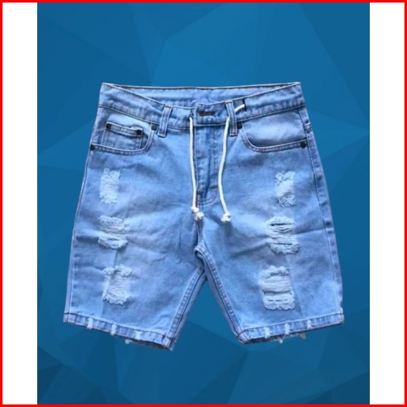 Celana Jeans Pendek Sobek Pria Wisker Ripped Robek Premium Denim Tali