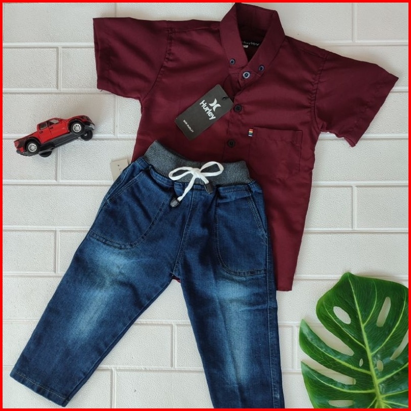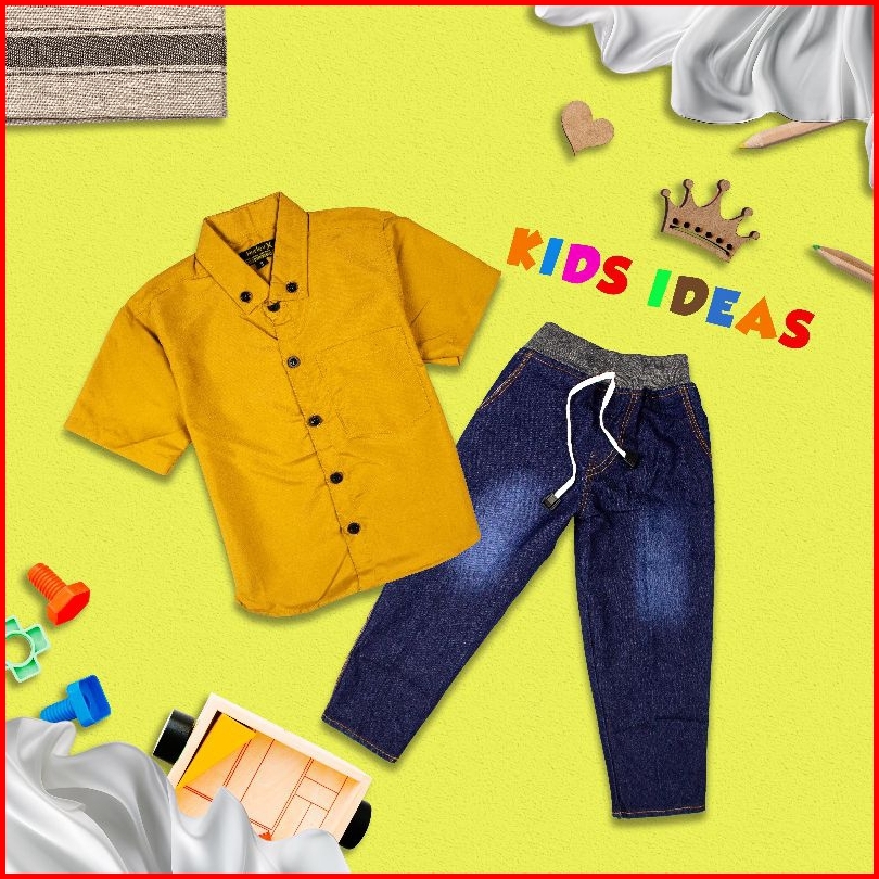 Setelan Anak Laki Baju Kemeja Lengan Pendek Dan Celana Panjang Jeans Konveksi Aji