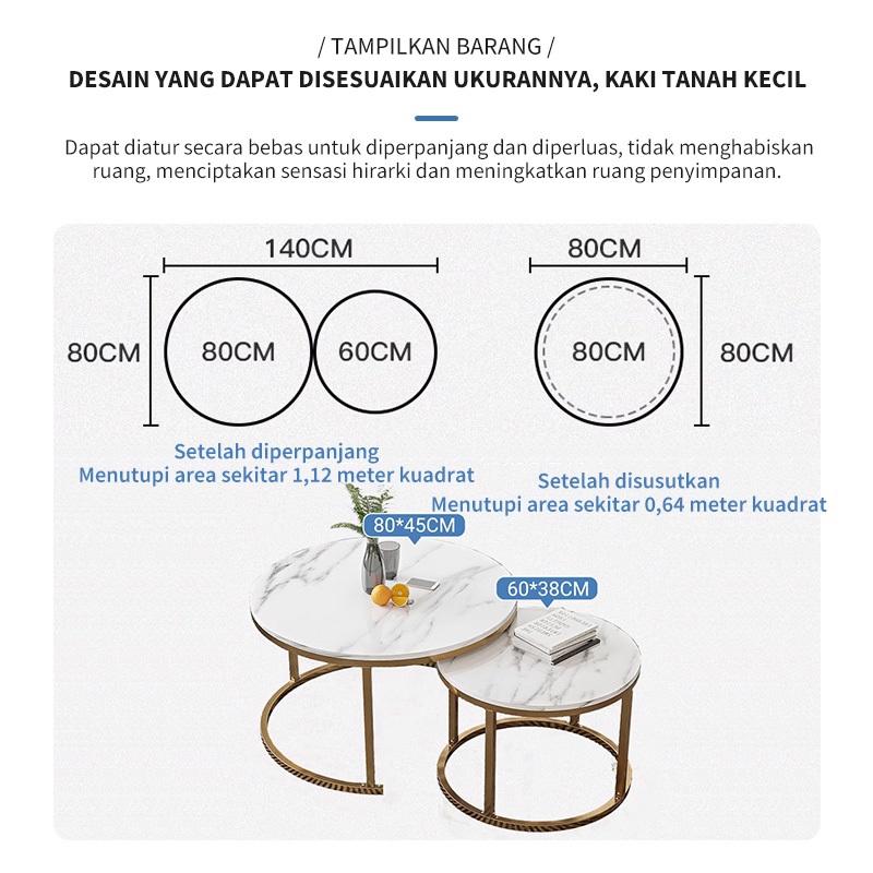 Meja Tamu Meja Kopi 2-In-1Meja Motif Marble Minimalis Meja Ruang Tamu Dapat Dikombinasi Bebas Meja Bulat sederhana Livi