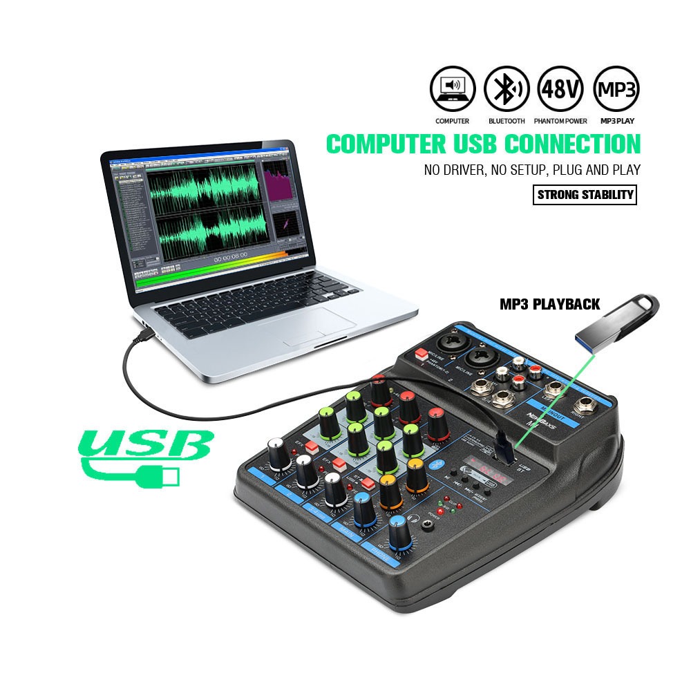 NEW BAXS Mixer Audio M4 USB/Electro Bluetooth 4 Channel mendukung penyetelan mobil 12V