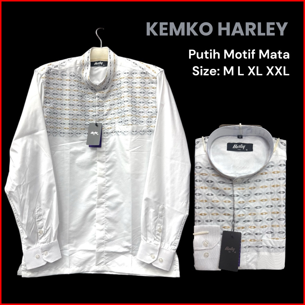 Ready Motif Putih Kemko Harley Ori Kemeja Koko Harley Warna Putih Banyak Motif