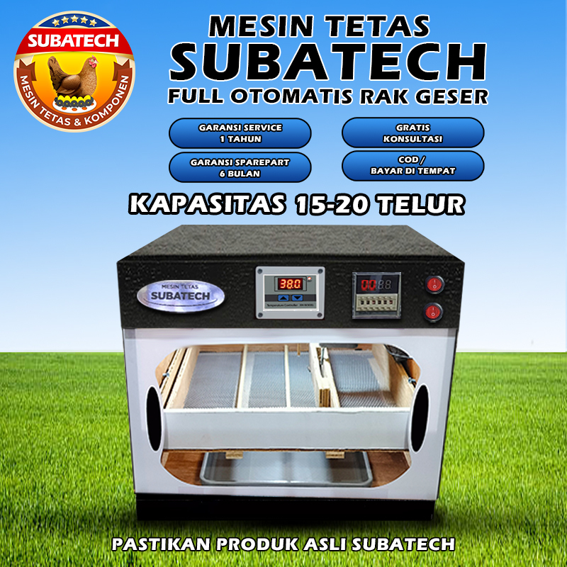 Mesin Tetas Telur Full Otomatis Penetas SUBATECH Rak Geser Kapasitas 15 20