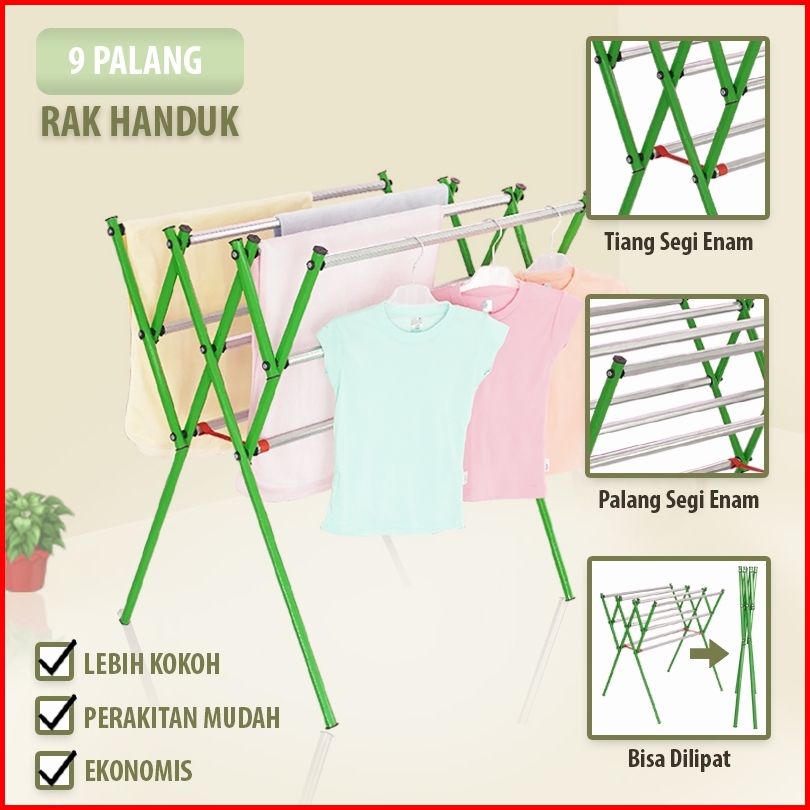 Jemuran Pakaian Rak Handuk Bisa Dilipat Bahan Galvalum