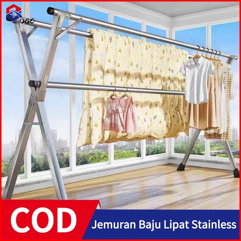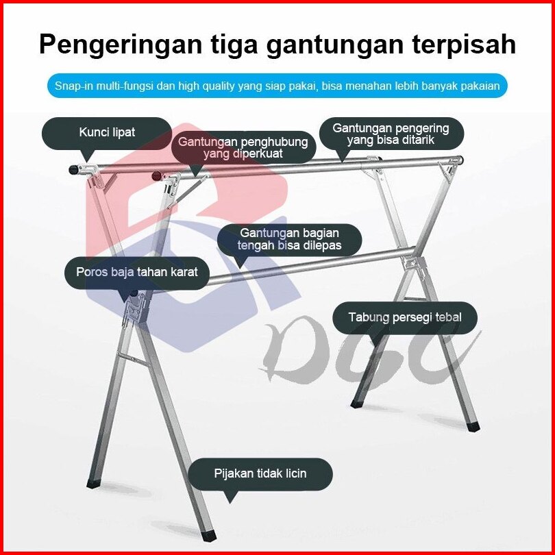 Dgc Jemuran Baju Lipat Stainless Jemuran Baju Portable Gantungan Baju Jemuran Pakaian Anti Karat Kuat Tempat