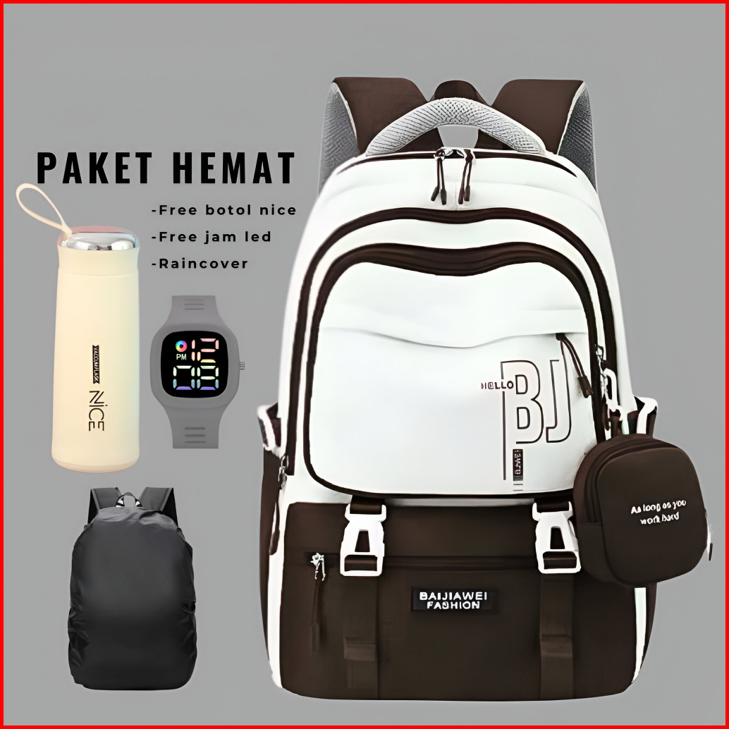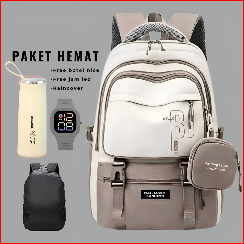 Tas Ransel Fashion Wanita Sekolah Kuliah Kerja Hello Bj Backpack Punggung Fashion Style Sd Smp Sma