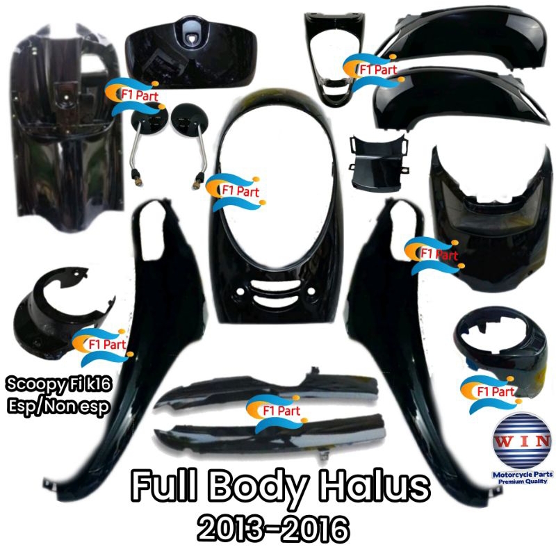 Full Body Halus Scoopy fi k16 2013-2016 esp non esp HITAM GLOSSY sayap mesin bodi rak laci spion cover a b stop underside