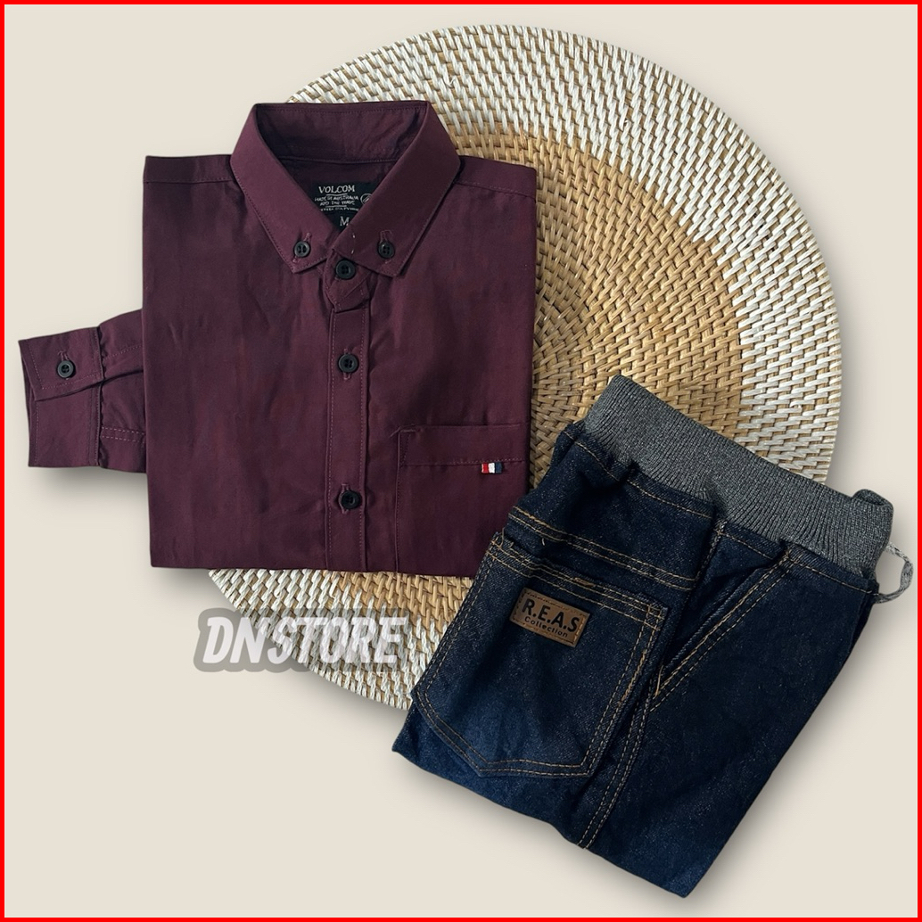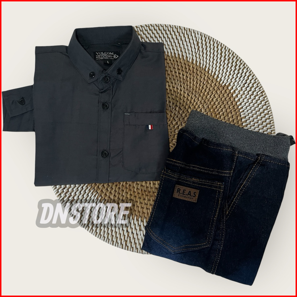 Setelan Kemeja Anak Laki-laki Lengan Panjang Celana Jeans Anak Usia 3-10 Tahun