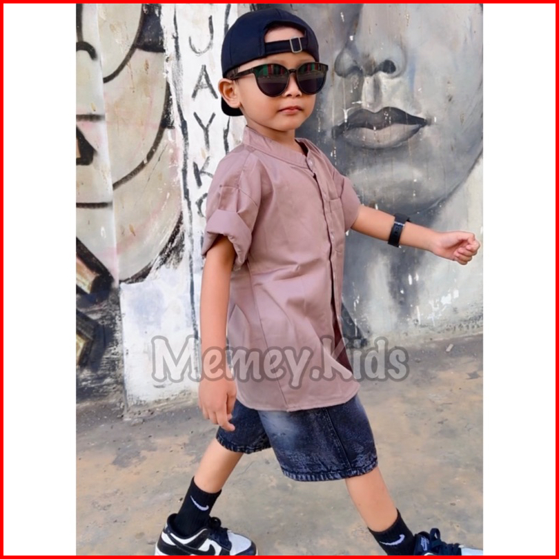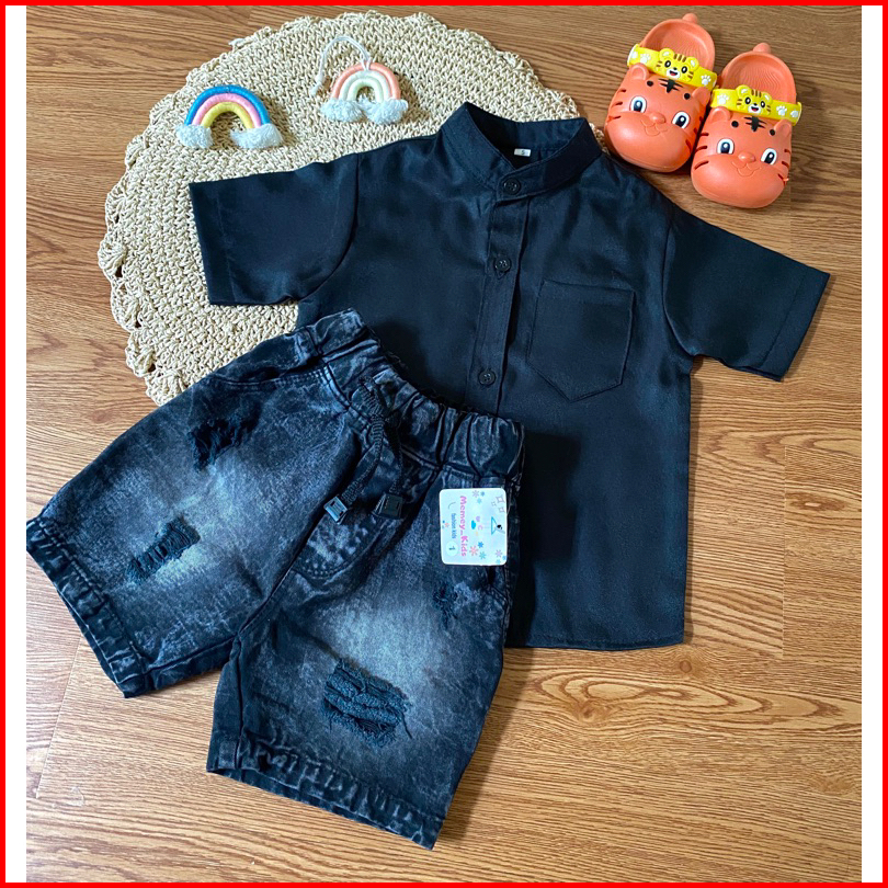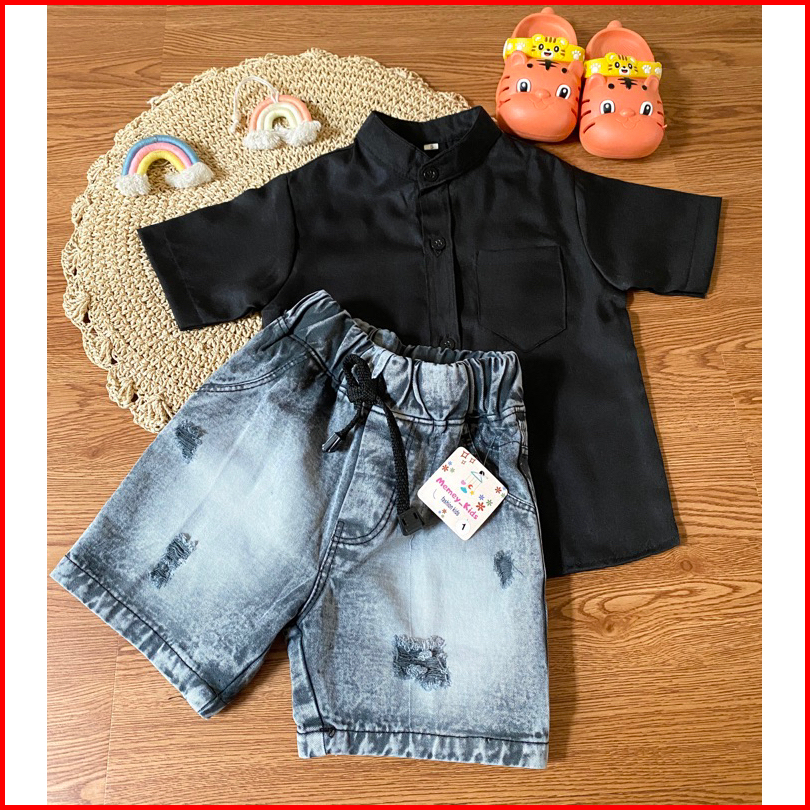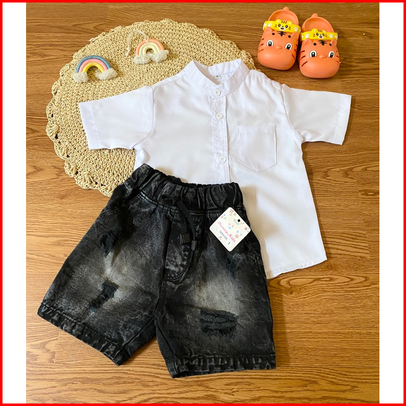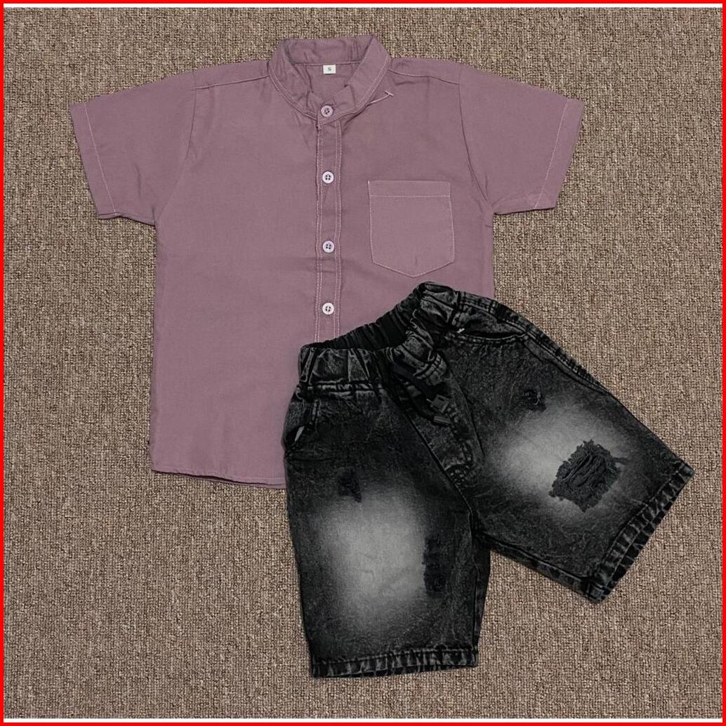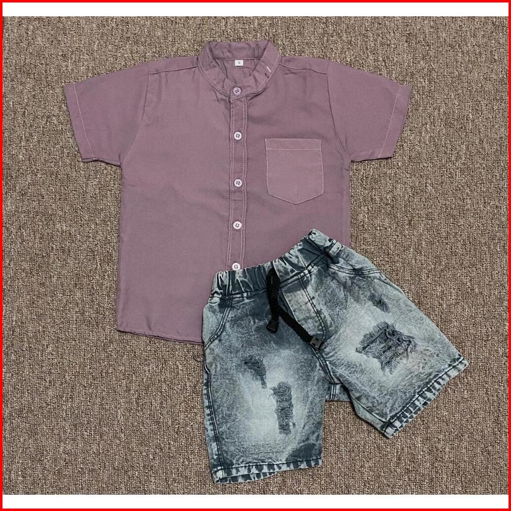 Setelan Pendek Jeans Setelan Anak Kemeja Jeans One Set Kemeja Baju Setelan Anak Laki Laki
