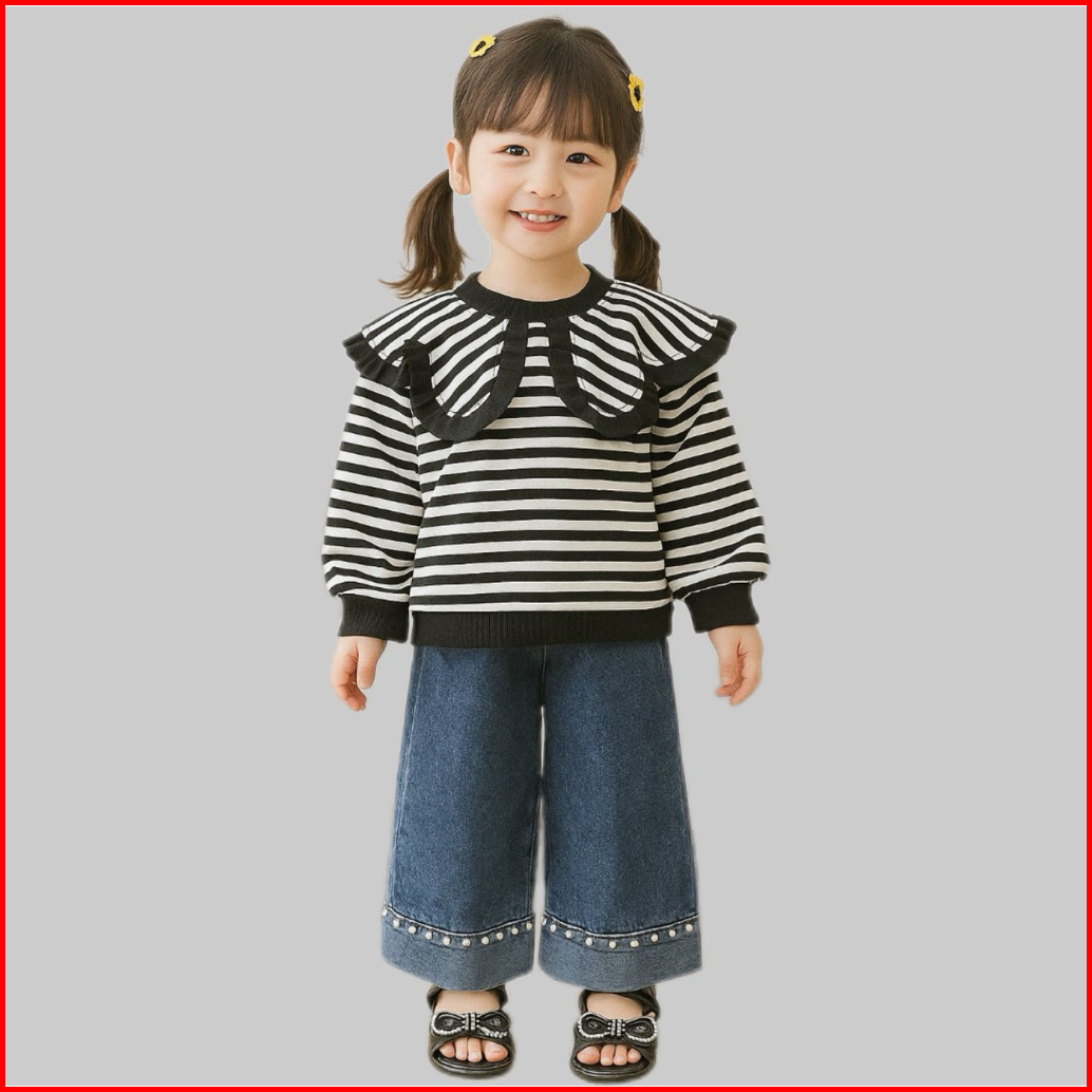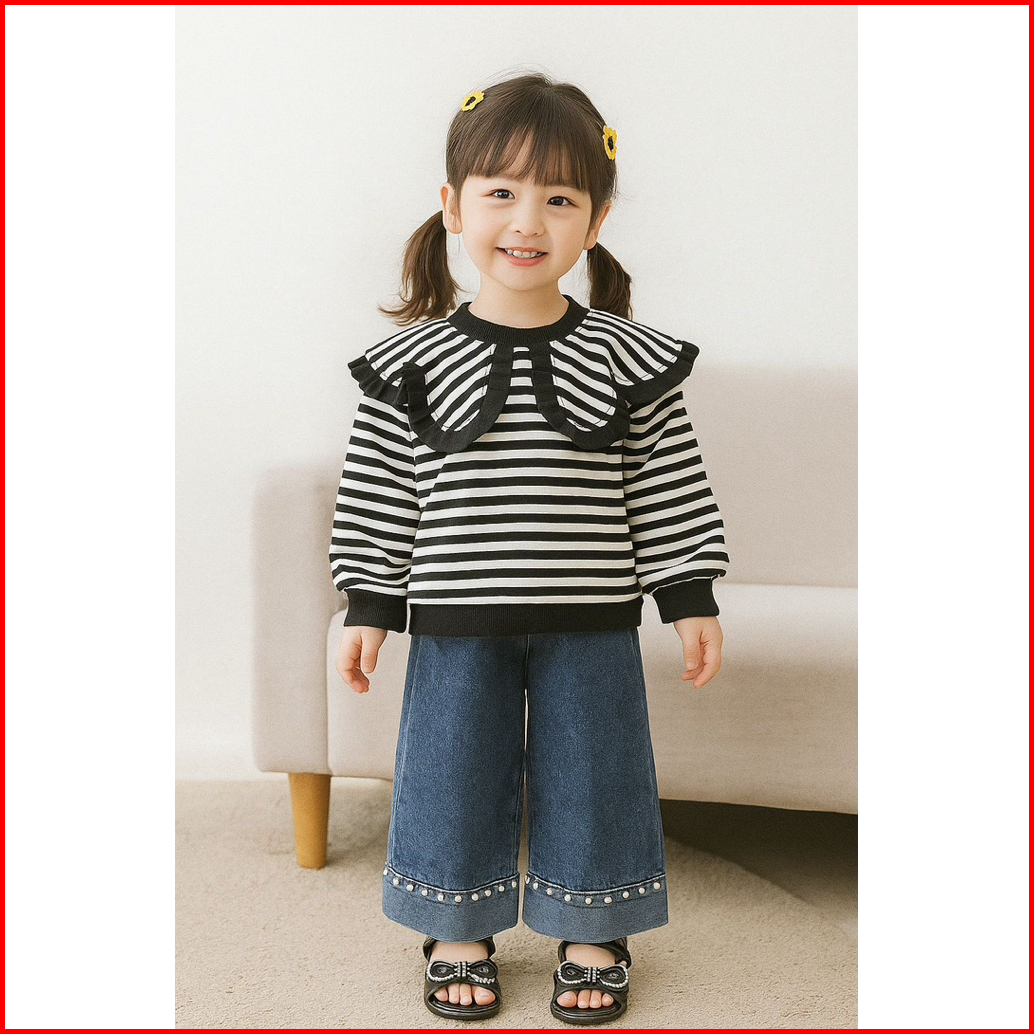 Setelan Anak Perempuan Baju Salur Dan Celana Denim Panjang Anak 1-5 Tahun Ardan Baju Anak