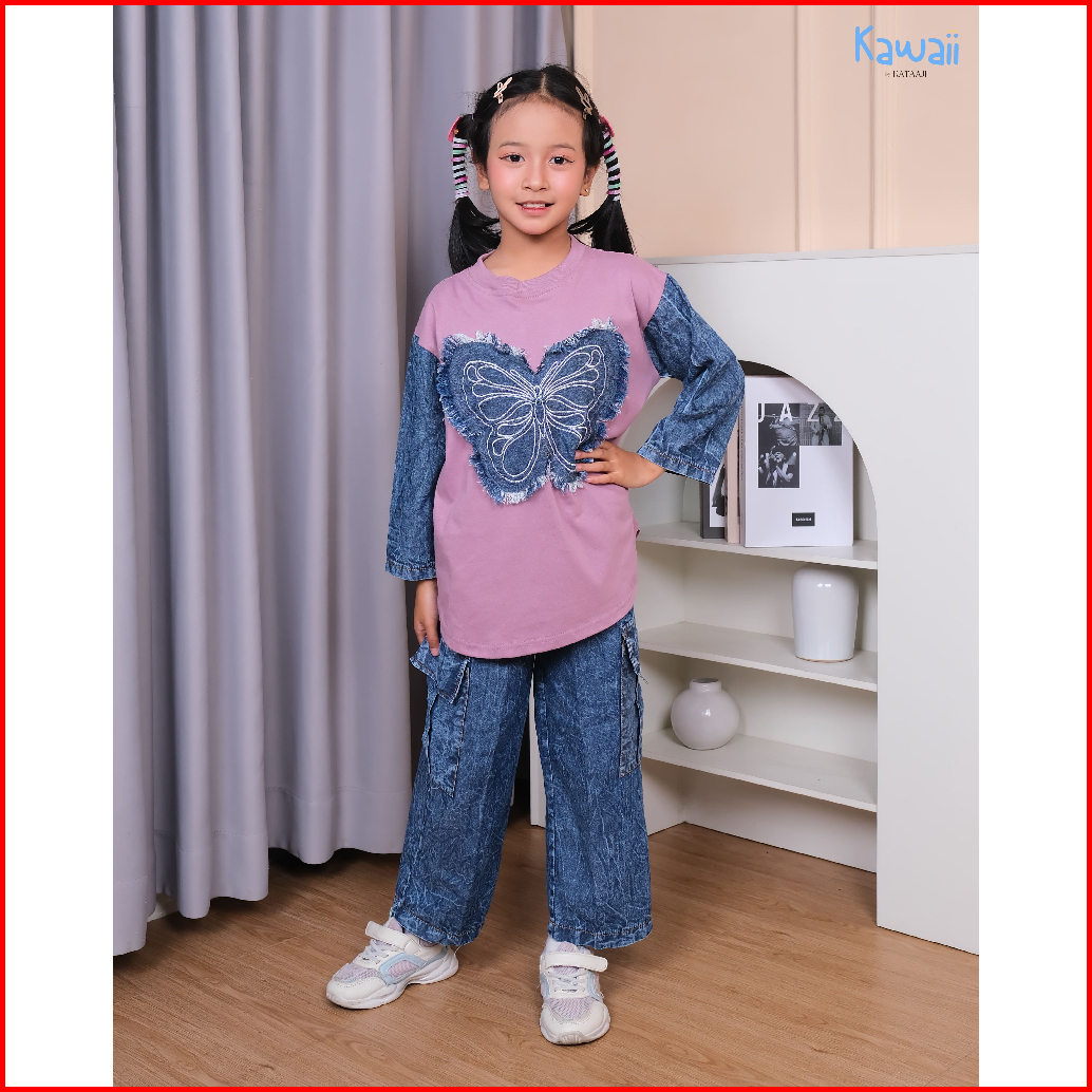 Stelan Anak Perempuan Premium - Iconic Denim By Kawaii - 100 Cotton Combed 24s Dan Soft Levis