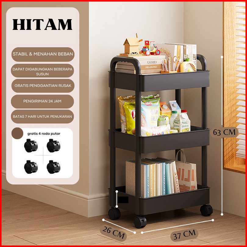 Sh Factory Outlet Rak Troli Susun Plastik Serbaguna Persegi Panjang 3 Susun Rak Dapur Rak Salon Tempat Penyimpanan Rak T