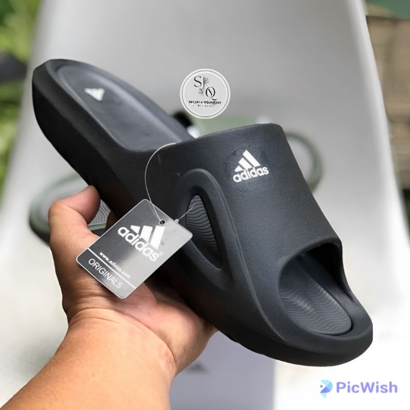 SANDAL SLIDE ADIIIDASSS ADICANE WHITE GREY SANDAL SLIP-ON PRIA-WANITA SANDAL ADIDAS