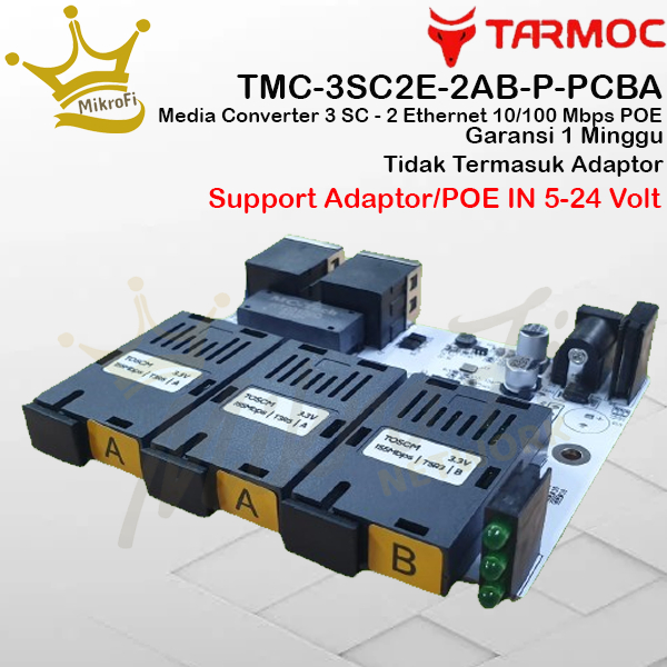 Tarmoc TMC-3SC2E-2AB-P-PCBA | Media Converter Switch 3FO 2LAN / 3 FO 2 LAN 10/100Mbps POE IN 5-24 Volt | 3SC 2LAN / 3 SC