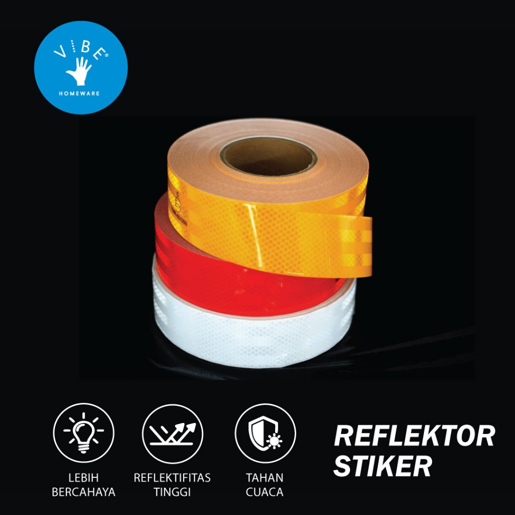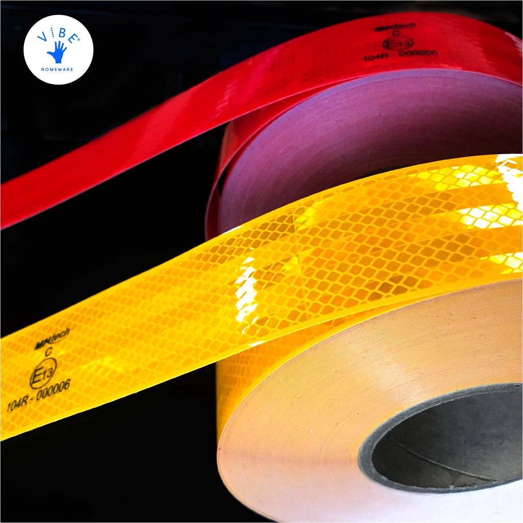 1 ROLL REFLECTOR MERAH KUNING PUTIH E11/REFLECTIVE TAPE/STICKER PEMANTUL CAHAYA MURAH/UNTUK MOBIL BOX TRUK- 5cmx50m UJI