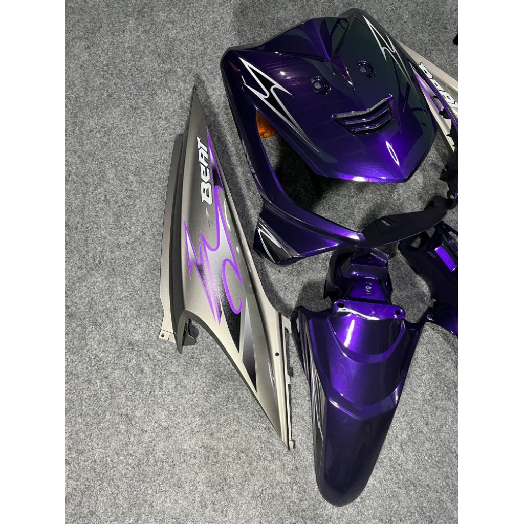 Cover body full set bodi halus Honda beat karbu ungu candy mix grey striping beat transparan vietnam style tahun 2008 sampai 2012