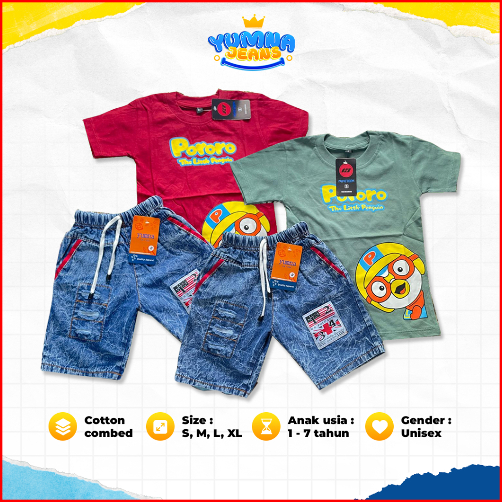 Setelan Anak Laki Laki Perempuan Usia 1-10tahun One Set Atasan Bawahan Celana Jeans Pendek