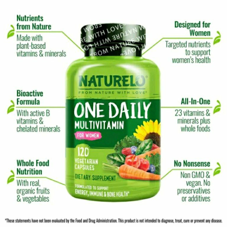 NATURELO RANKED NO.1 BEST MULTIVITAMIN ONE DAILY MULTIVITAMIN FOR WOMEN 60 CAPSULES KAPSUL SAYUR VEGETABLE KAPSUL ORI