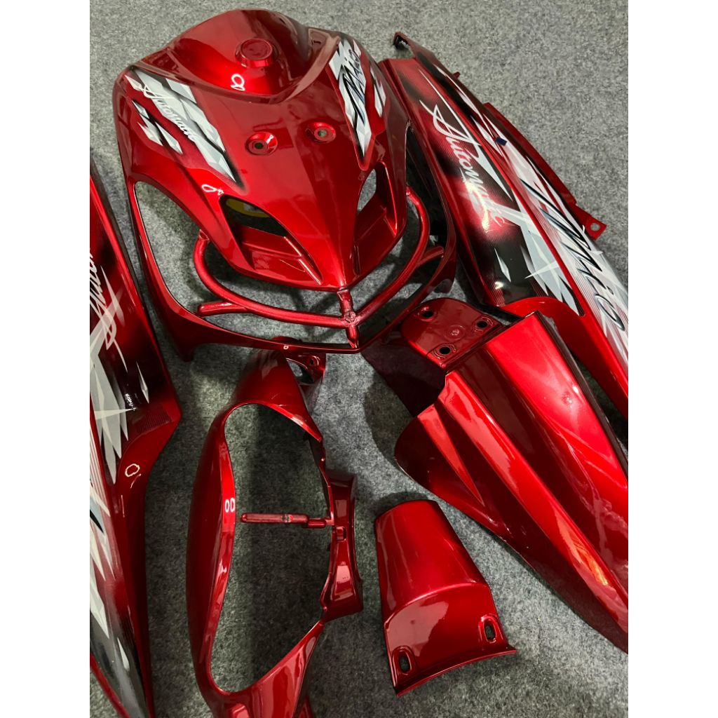 Cover full body halus yamaha mio smile warna merah marron plus striping