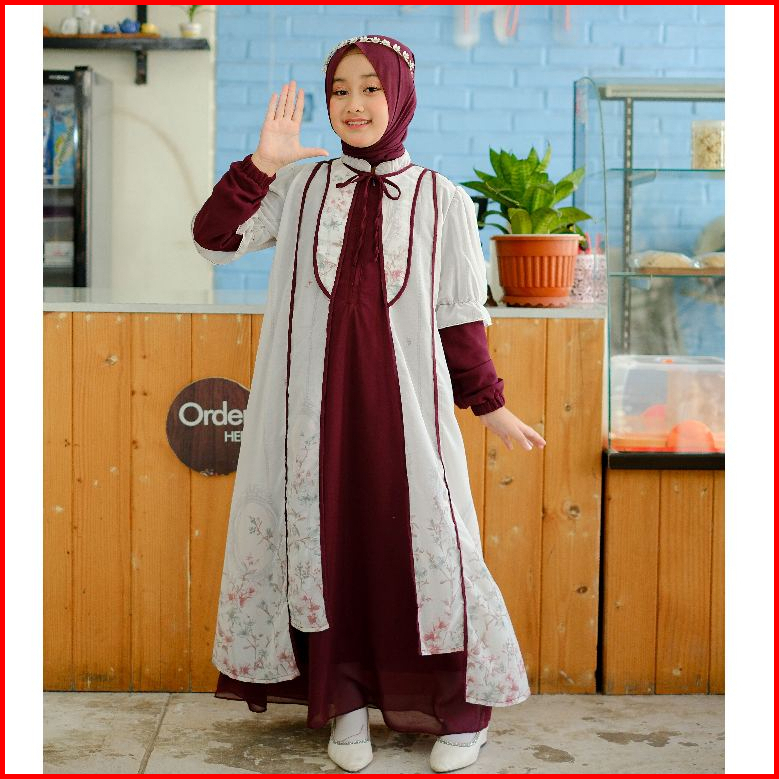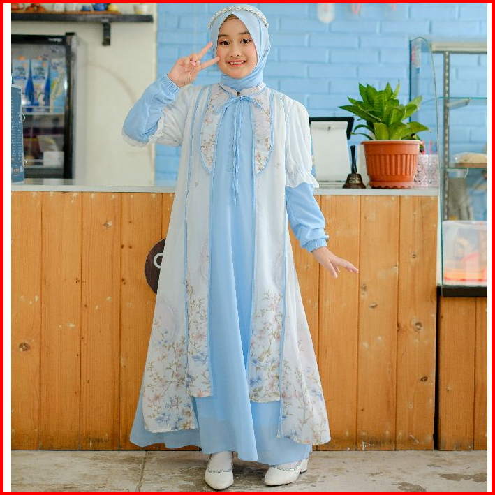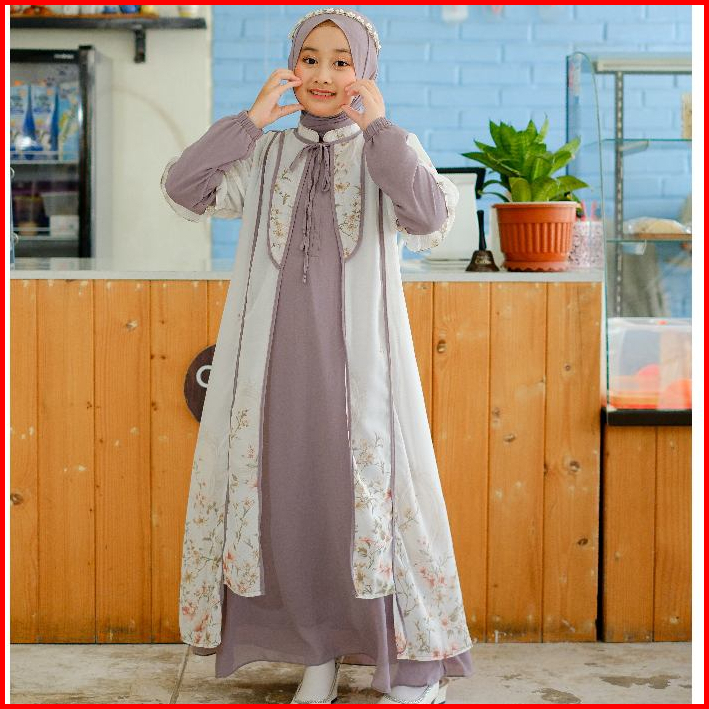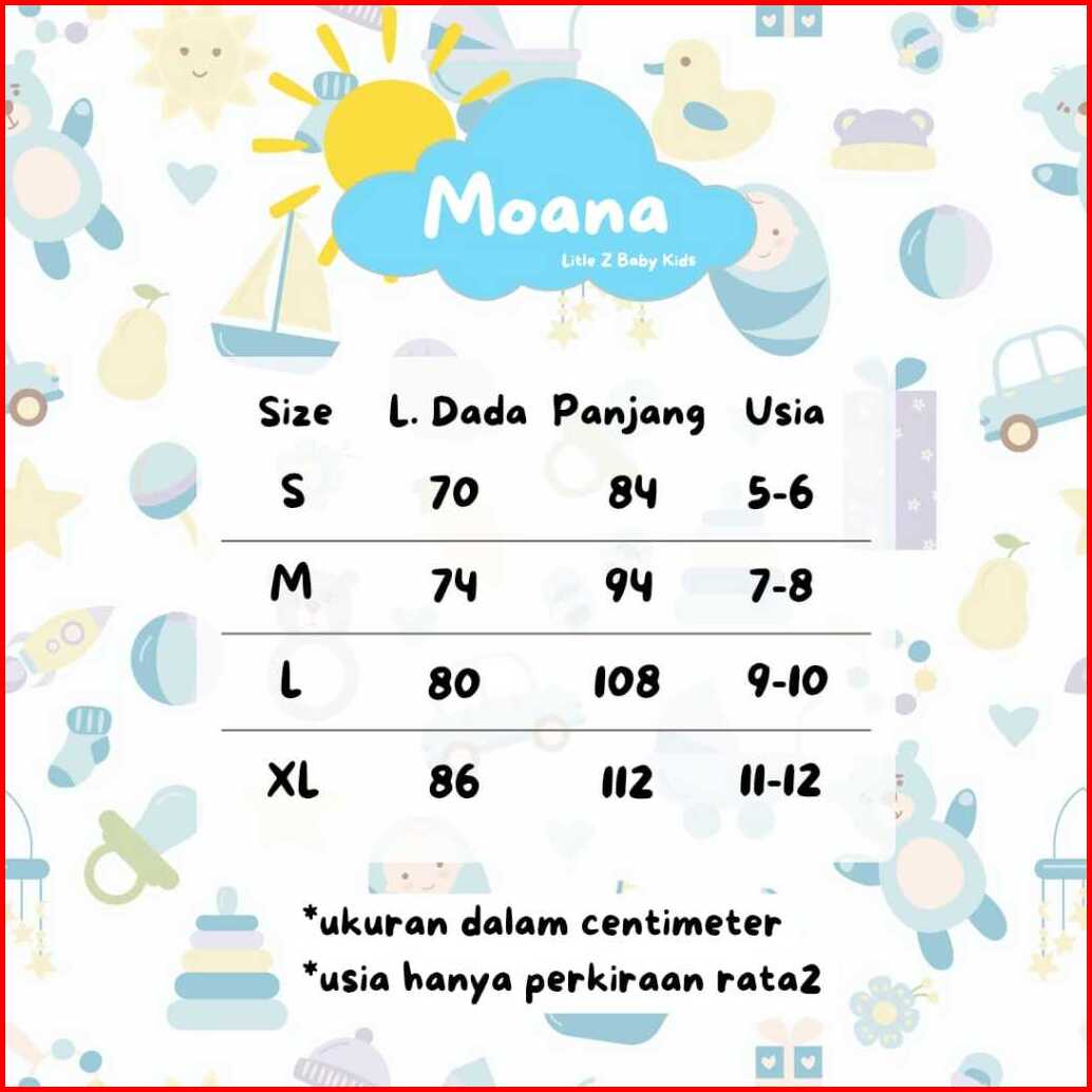 Set Gamis Anak Perempuan 5-12 Tahun Moana Set Babydoll Pasmina Dress Muslim Lebaran