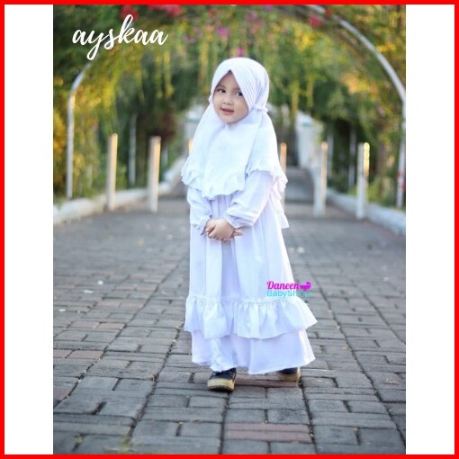 Busana Muslim Anak Gamis Anak Perempuan Putih Manasik Haji Gamis Sekolah Free Set Kerudung Katun
