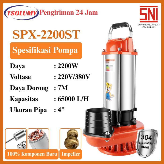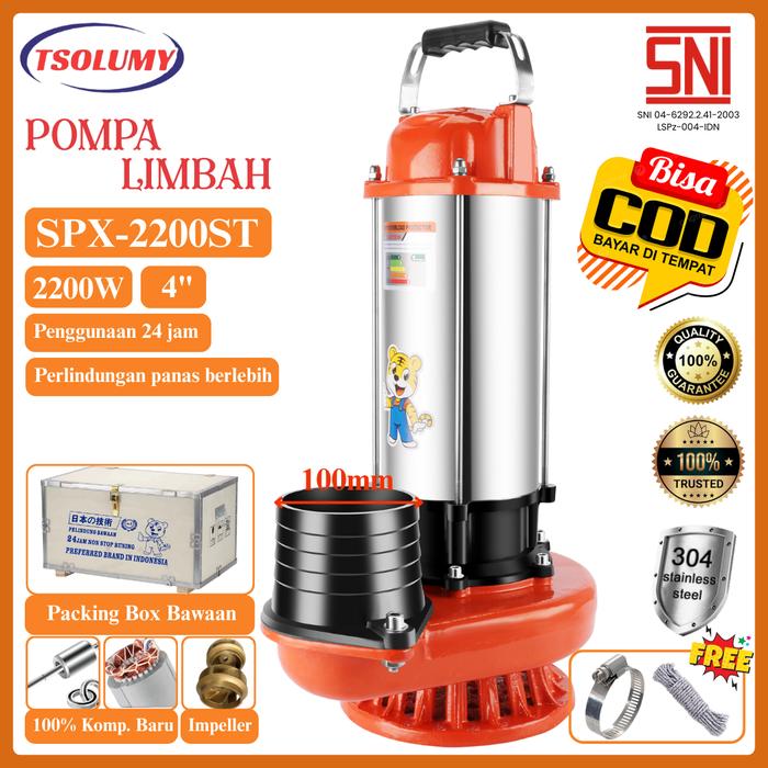 Tsolumy Pompa Celup Air Kotor SPX-2200ST Pompa Limbah Pompa Lumpur Pompa Ternak Hewan Pompa Lumpur
