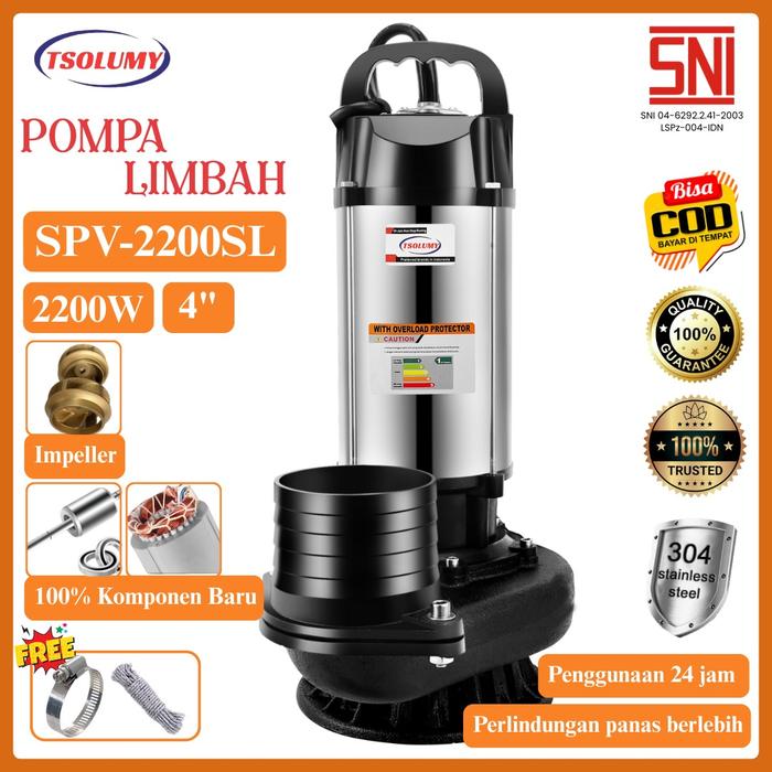Tsolumy Pompa Celup Air Kotor SPV-2200SL Otomatis Output 4 Inch Mesin Pompa Air Submersible Pompa