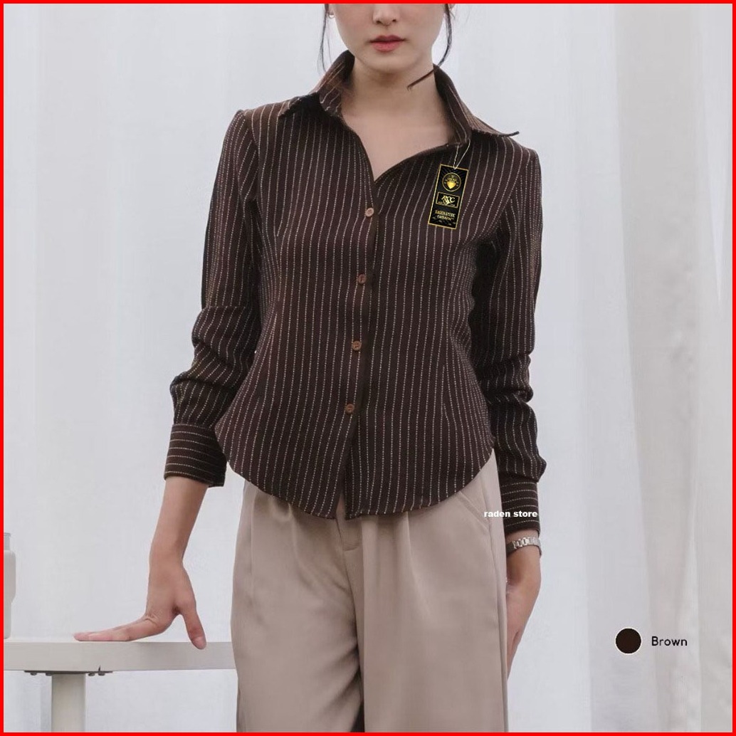Raden Luna Stripe Fitted Shirt - Kemeja Wanita Stripe Fitted Salur - Atasan Wanita Lengan Panjang
