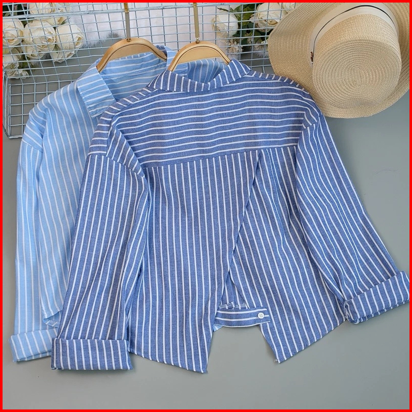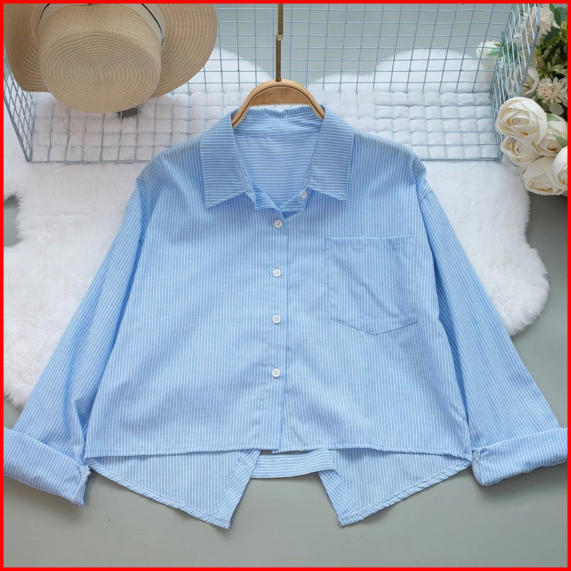 Kemeja Salur Wanita Lengan Panjang Crop Top Jumbo Oversize