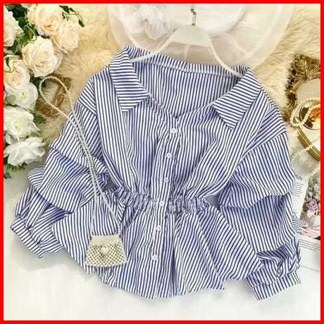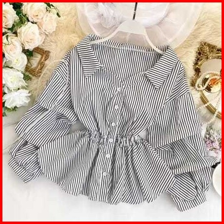 Atasan Wanita Miyuki Blouse Katun Salur Fit To L