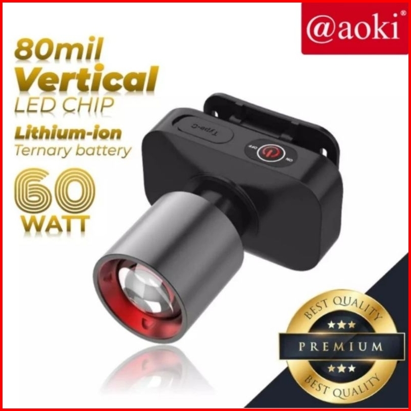 Aoki Senter Kepala Headlamp 60w Led Zoomable Ak-3675a Ak-3685a